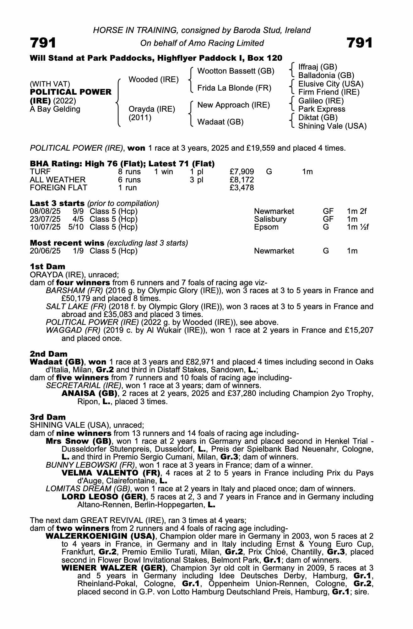 BHA Rating: High 76 (Flat); Latest 73 (Flat)