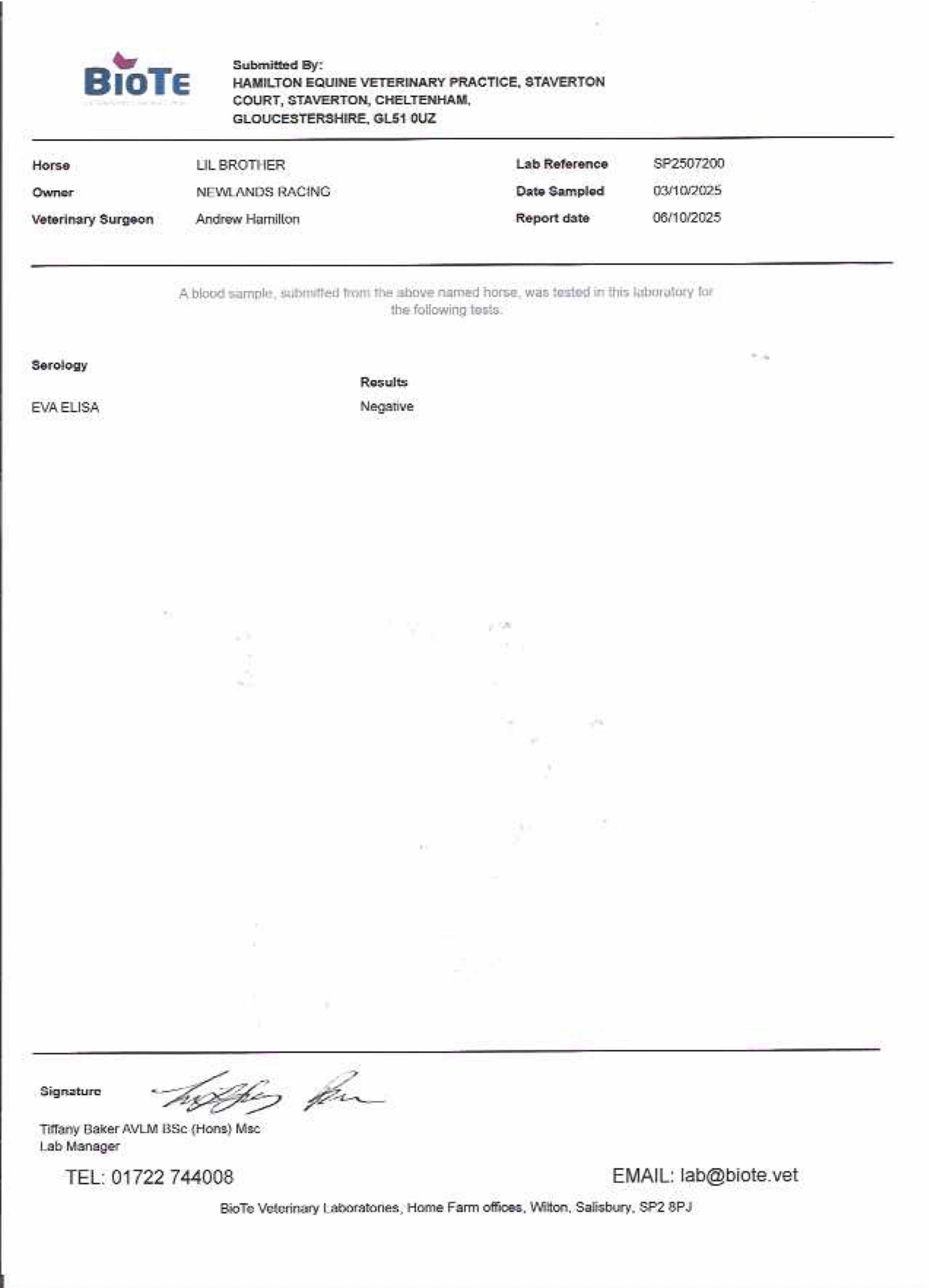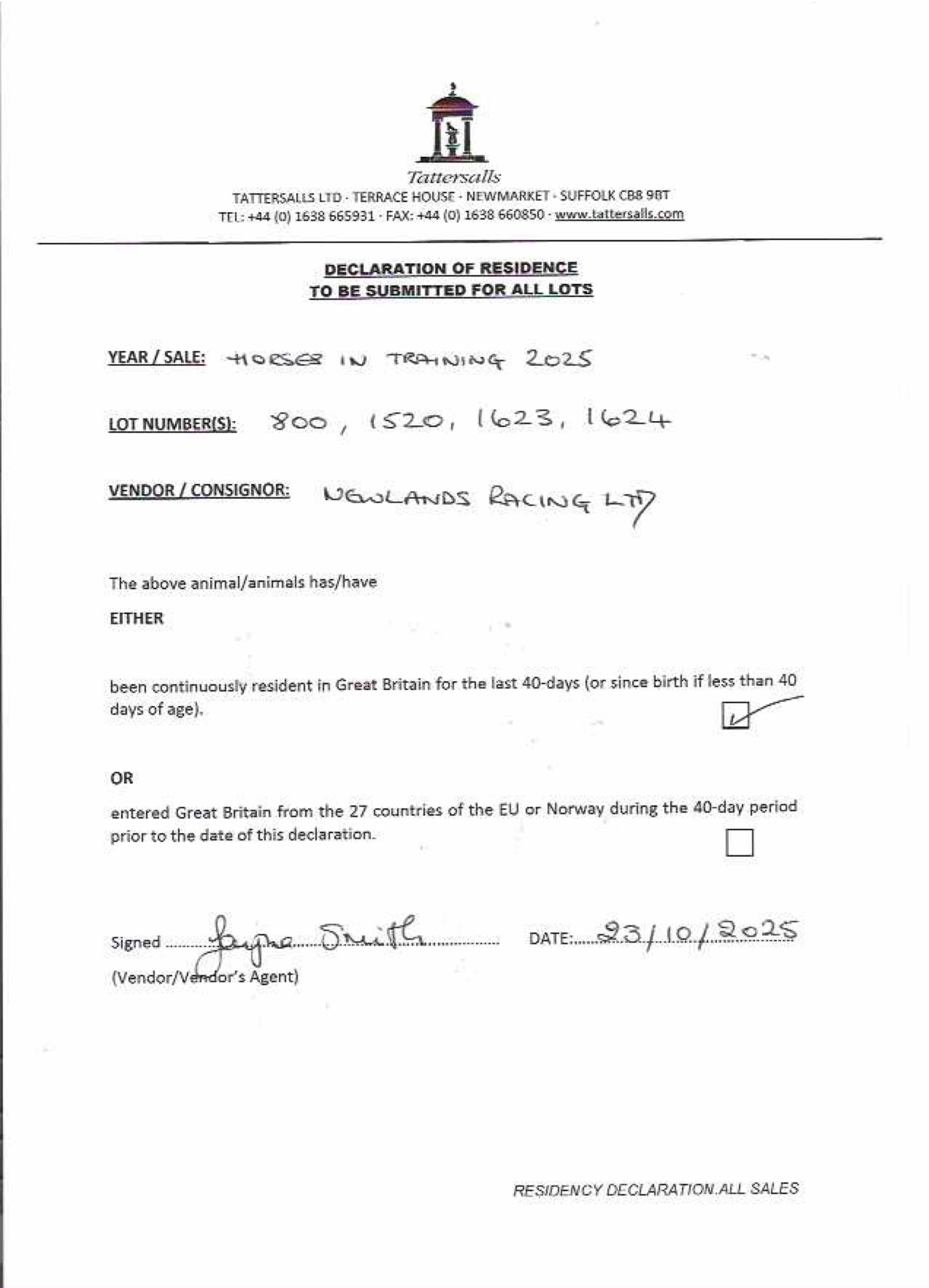 Consignor: Newlands Racing Ltd.