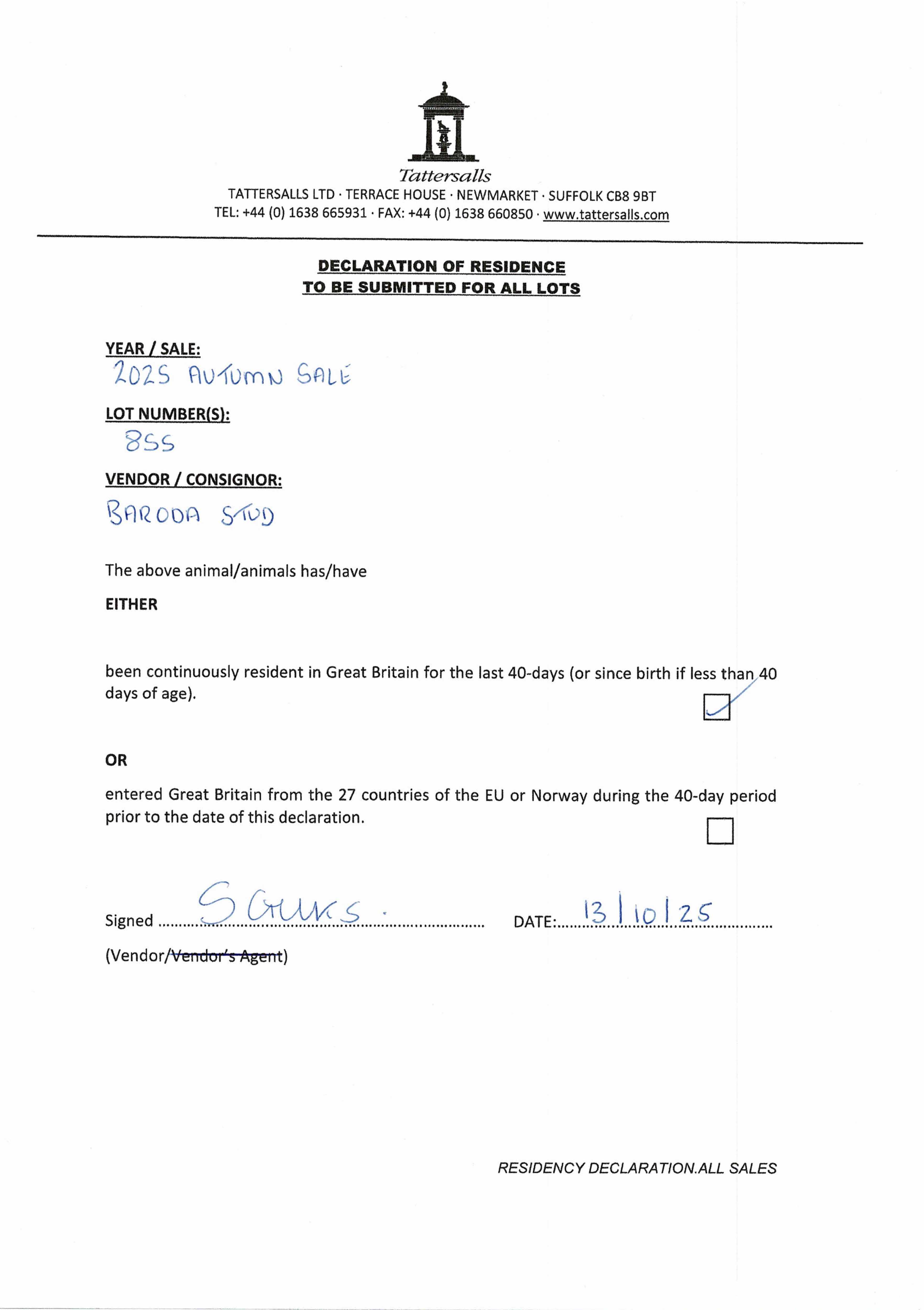 Consignor: Baroda Stud, Ireland