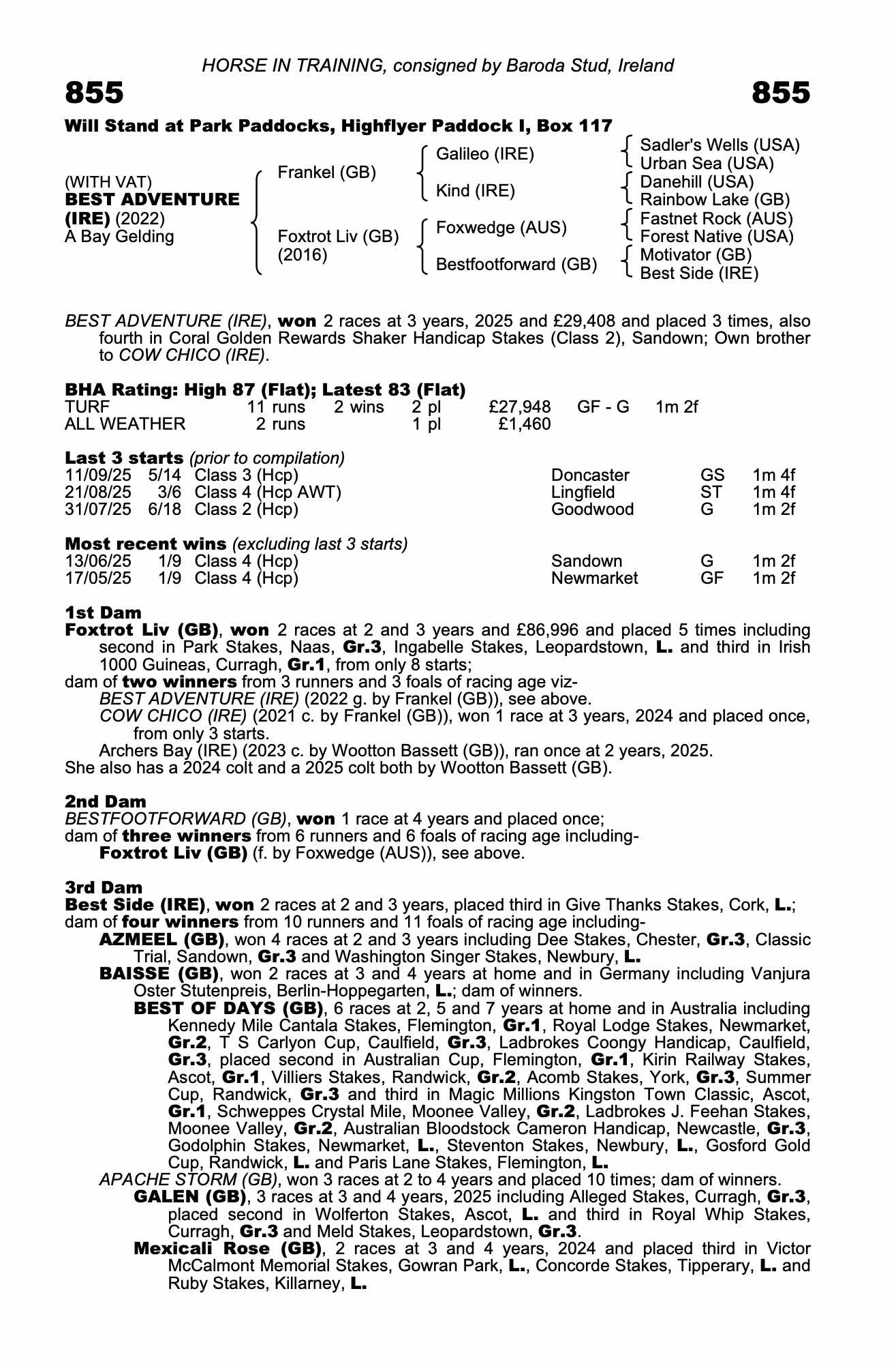 BHA Rating: High 87 (Flat); Latest 86 (Flat)