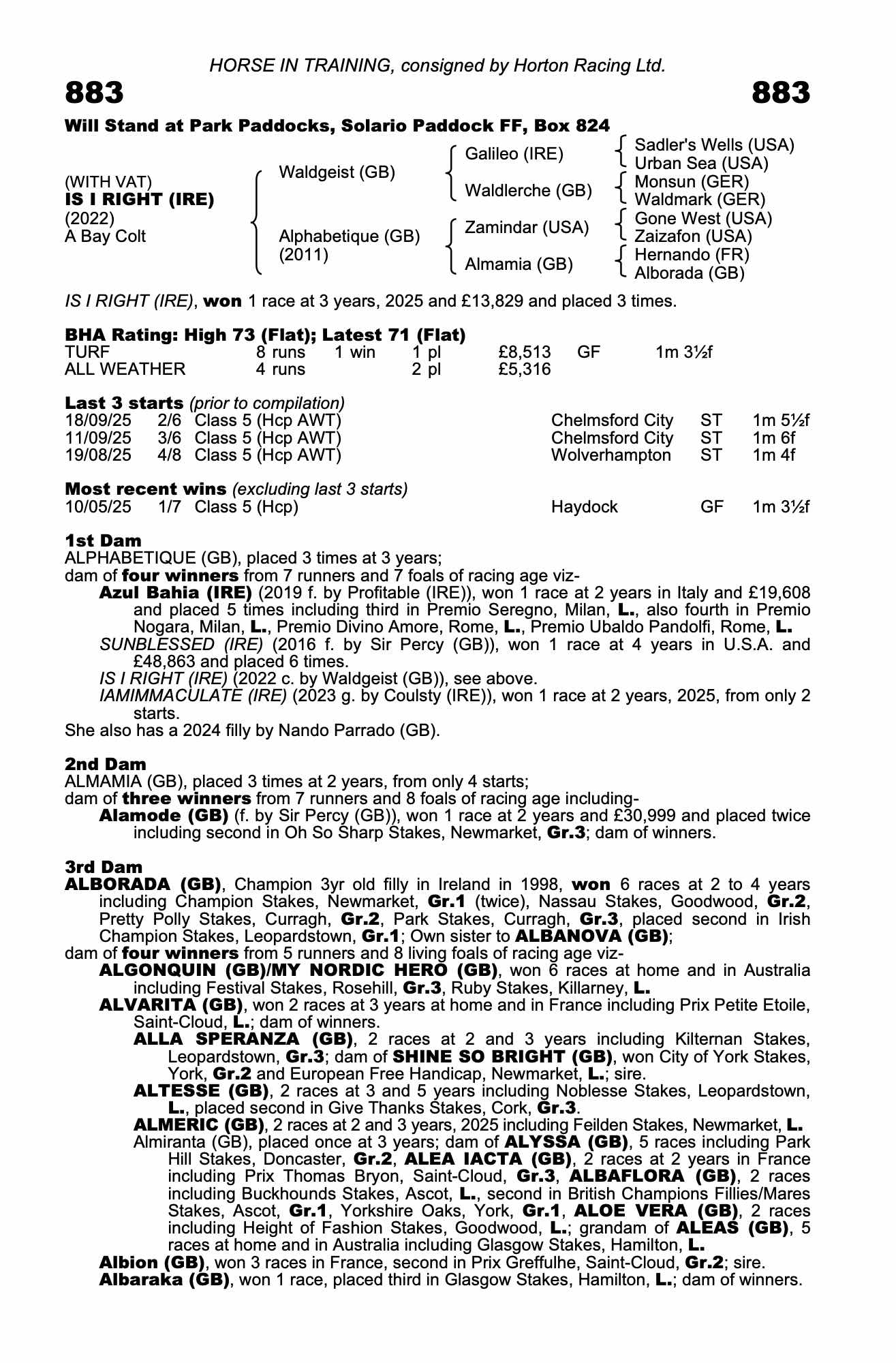 Autumn Horses In Training Sale 2024 lot 1179, Horton Racing Ltd.=>Horton Racing 8,000 gns