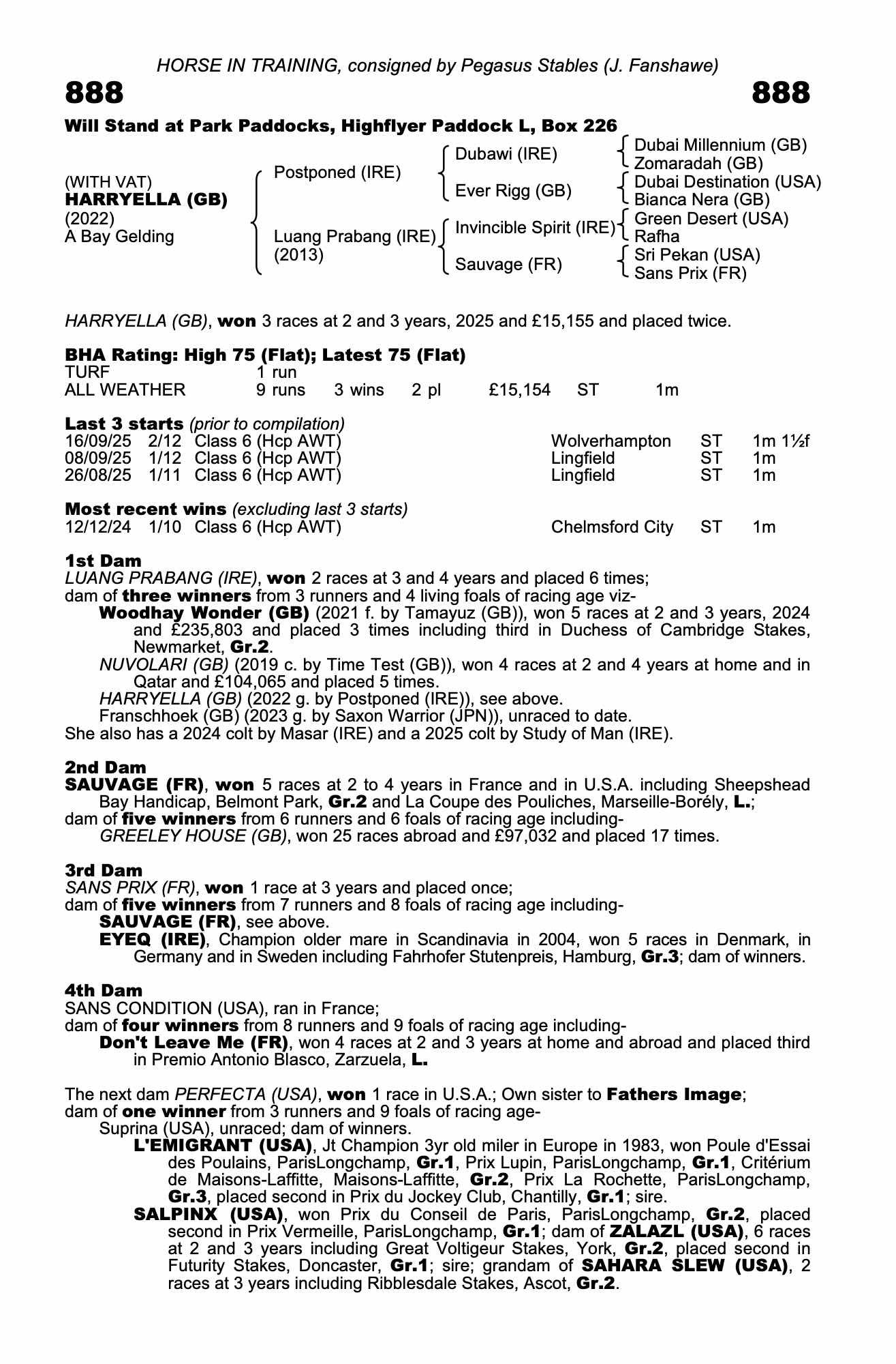 Consignor: Pegasus Stables (J. Fanshawe)