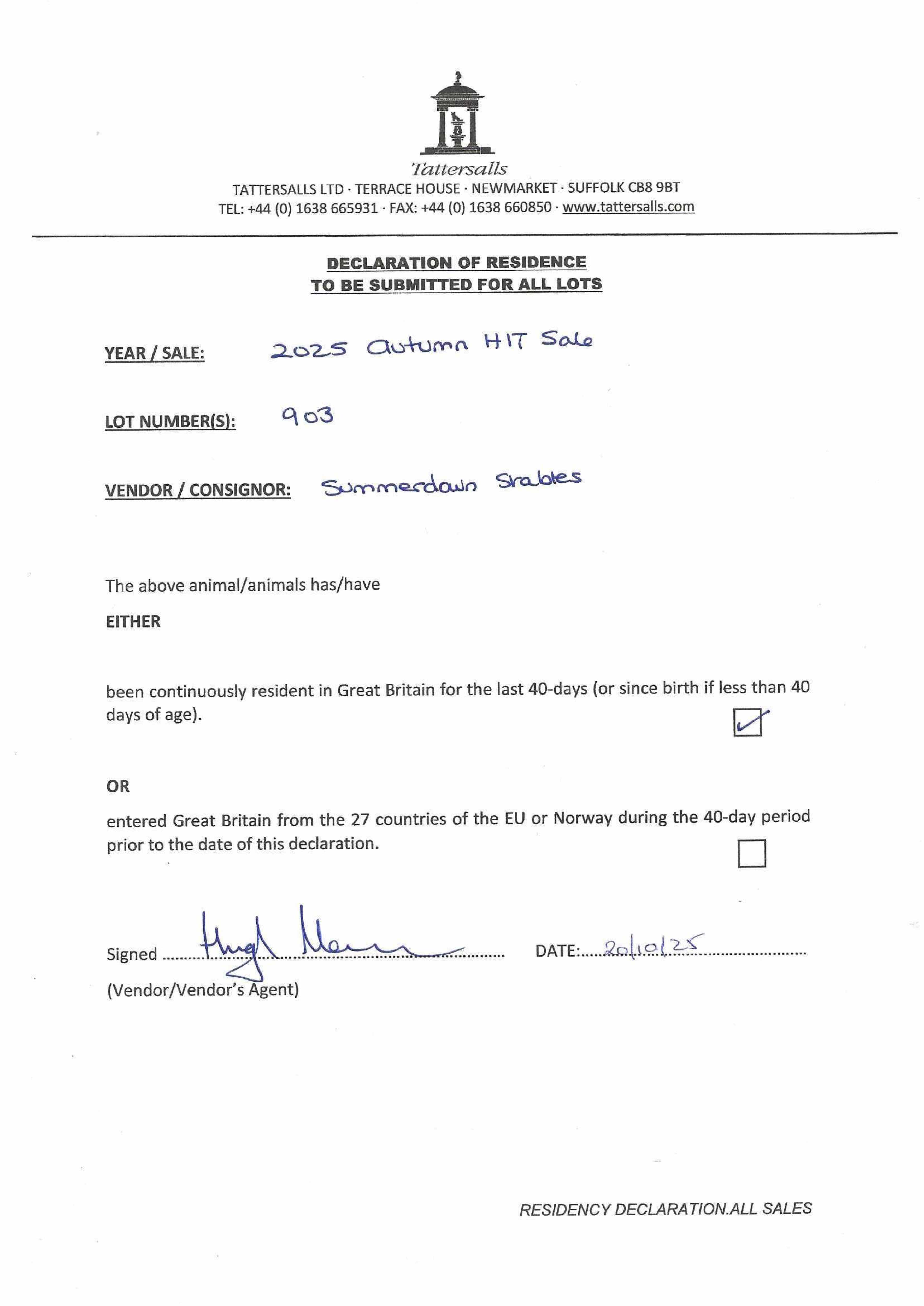Consignor: Summerdown Stables (H. Morrison)