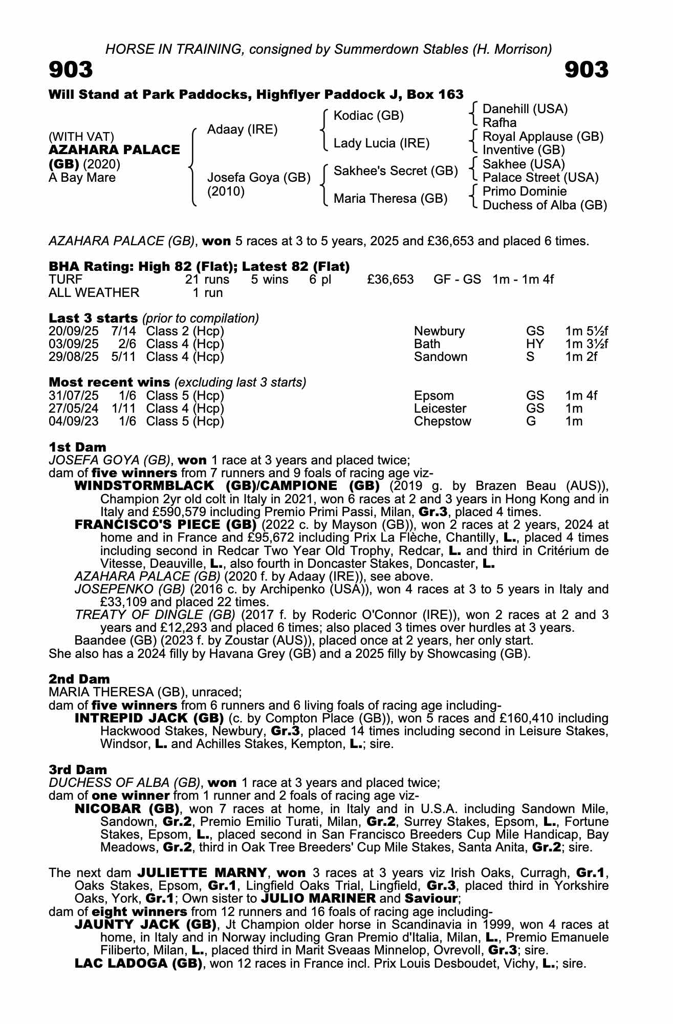 Somerville Yearling Sale 2025 lot 39 F. by Havana Grey (GB) 2024, Norris Bloodstock=>Rabbah Bloodstock 160,000 gns