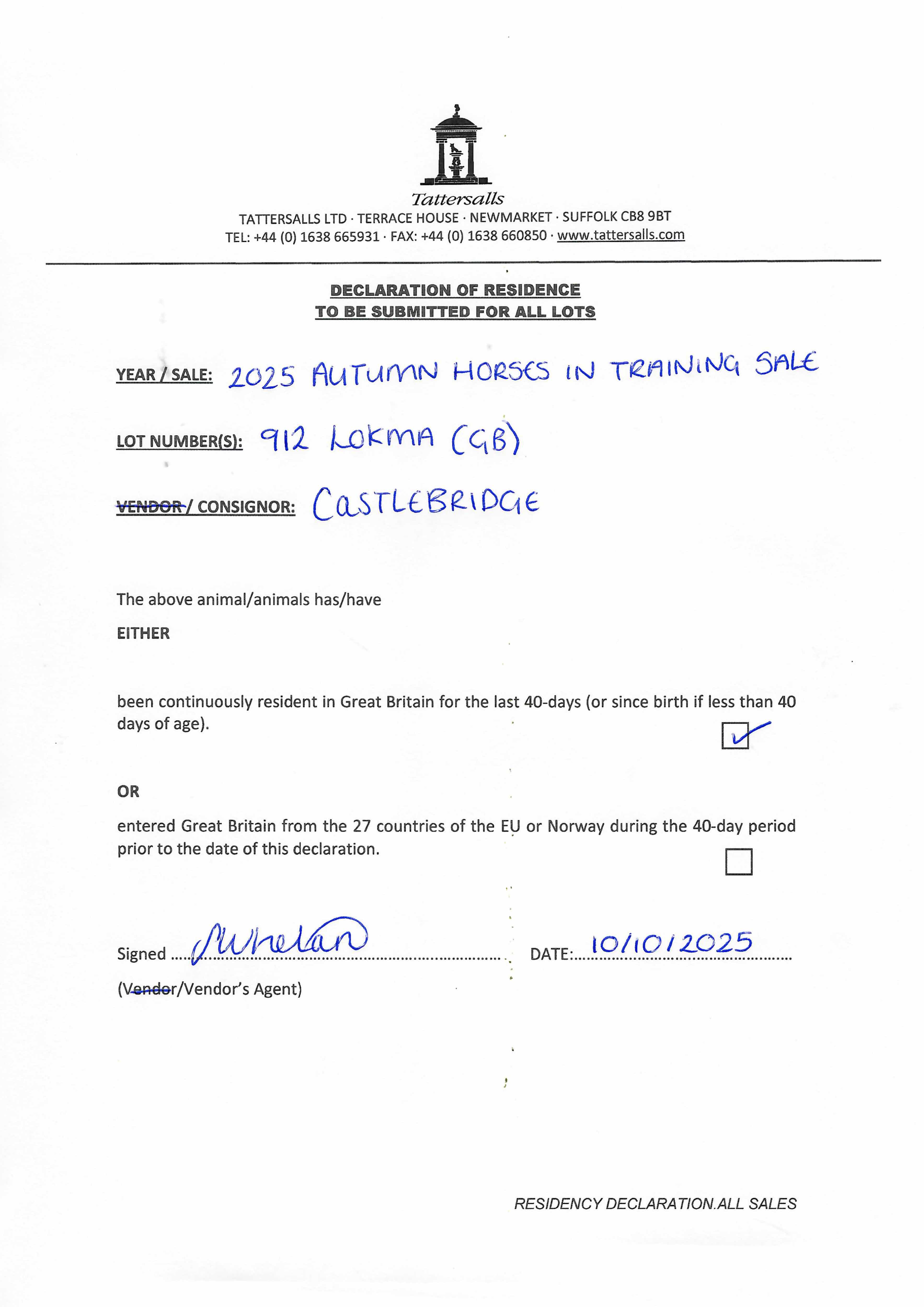 Consignor: The Castlebridge Consignment
