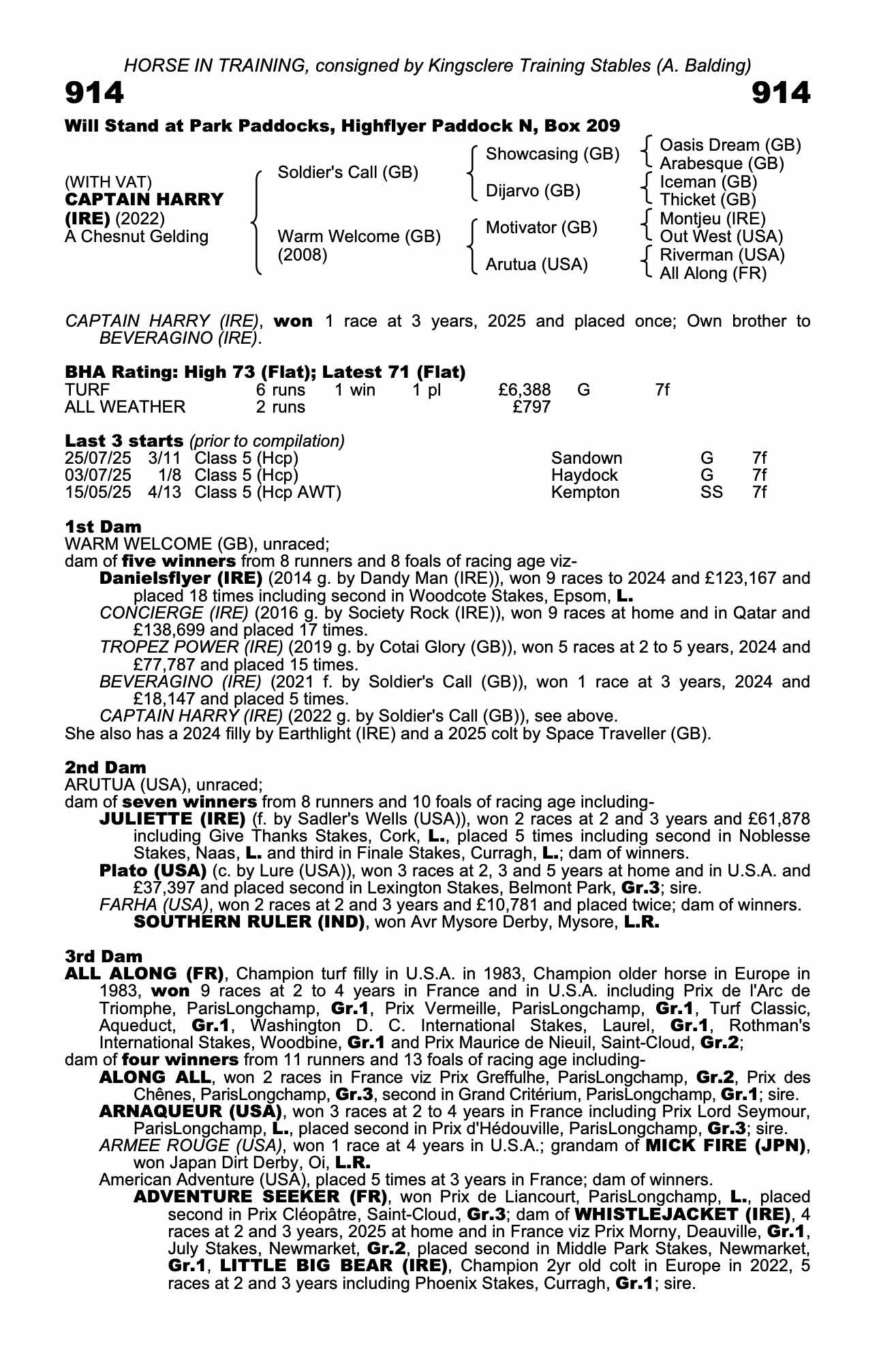 July Sale 2025 lot 114, Kingsclere Training Stables (A. Balding)=>Lot Not Sold 21,000 gns