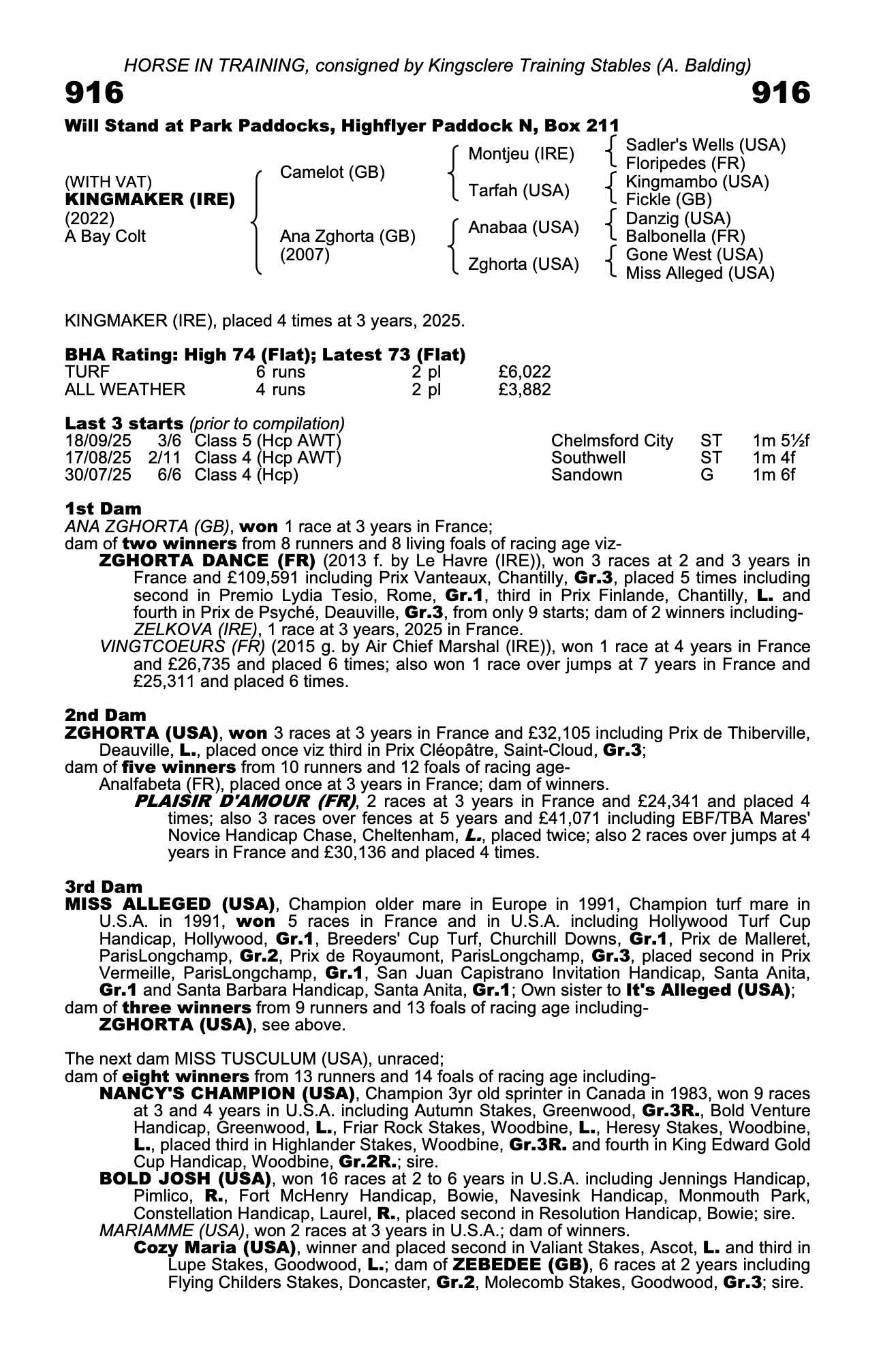 BHA Rating: High 74 (Flat); Latest 74 (Flat)