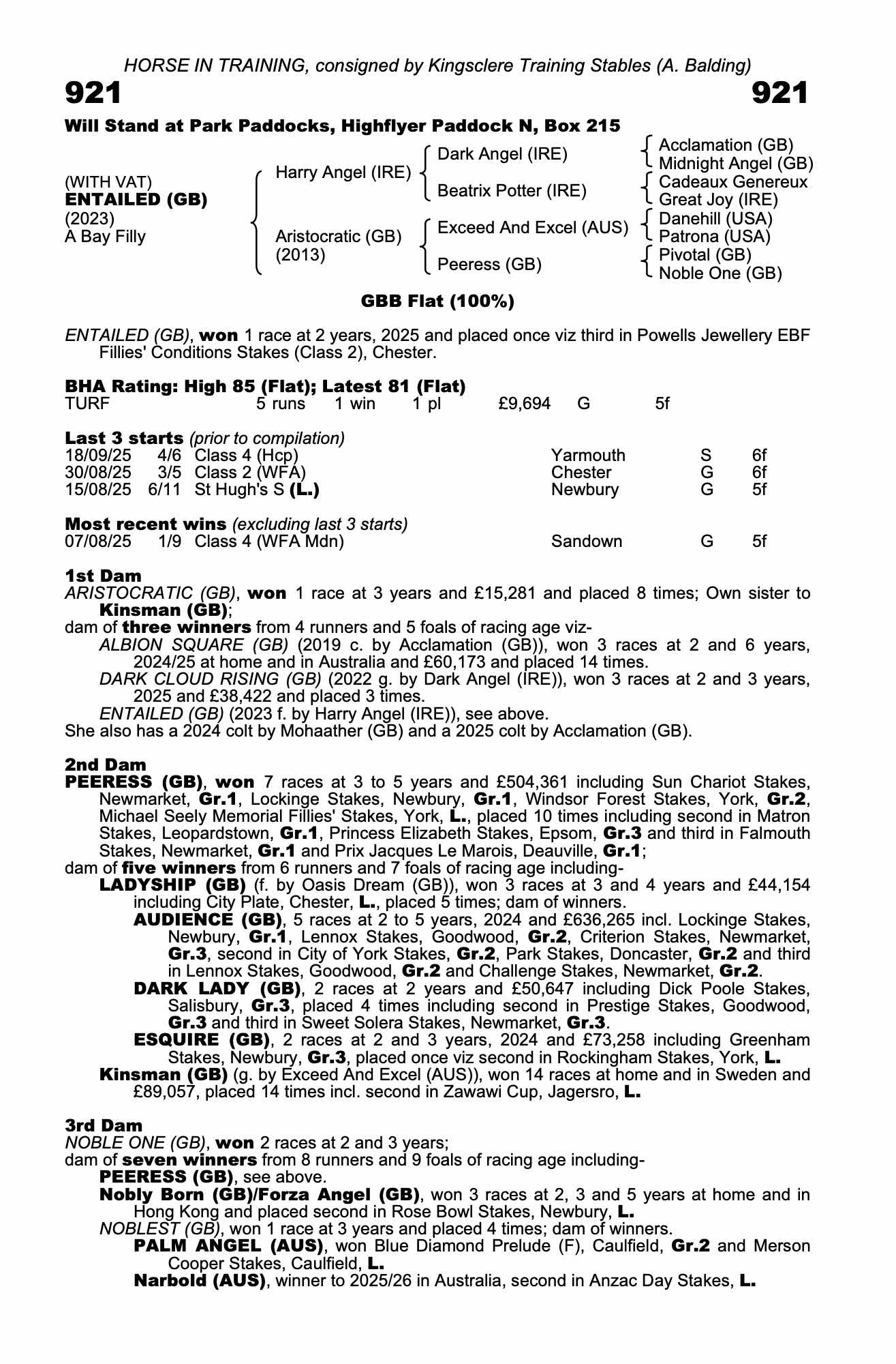 Consignor: Kingsclere Training Stables (A. Balding)