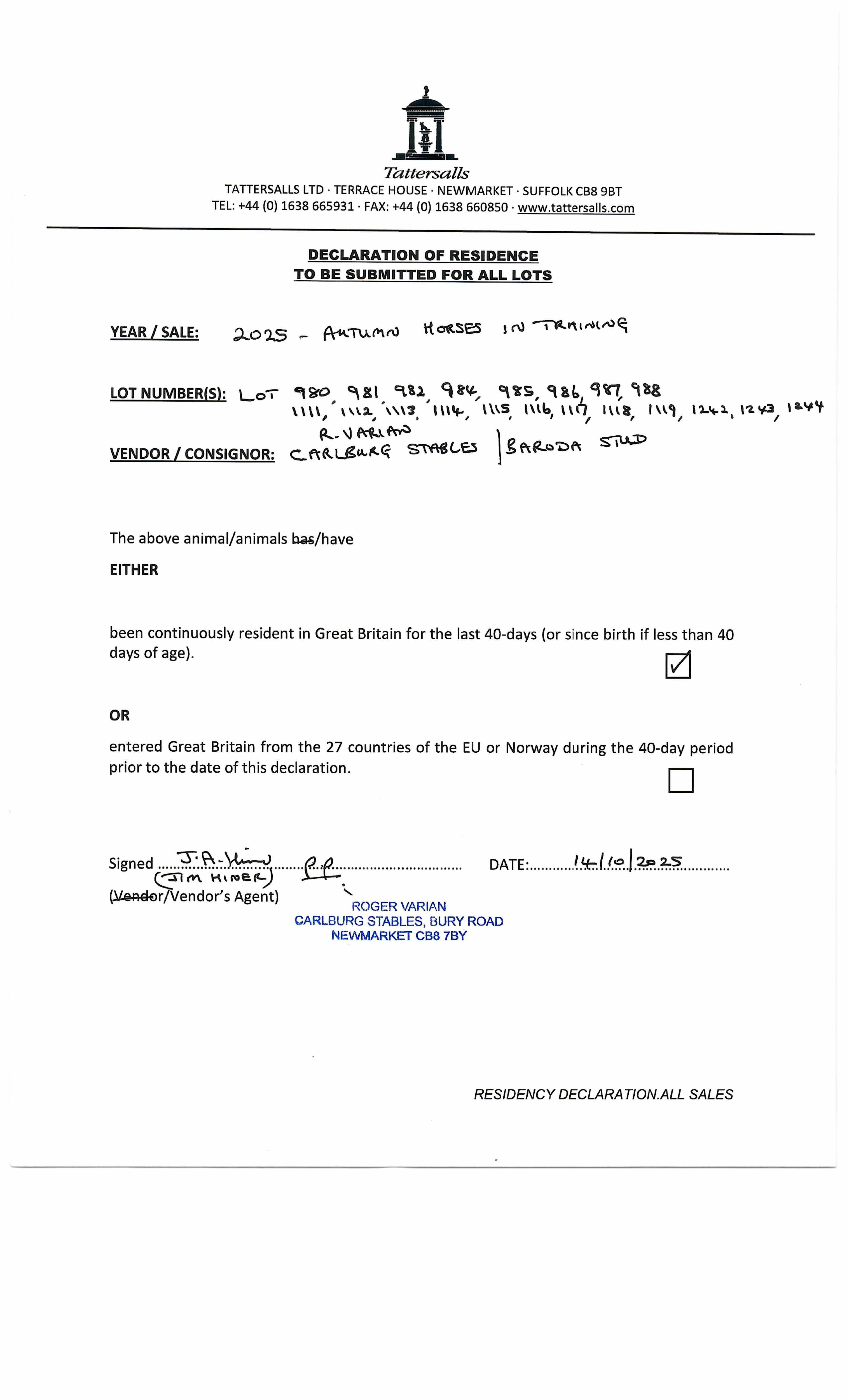 Consignor: Baroda Stud, Ireland