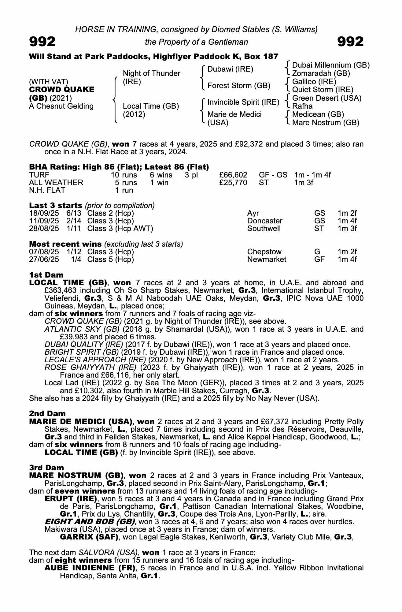 July Sale 2024 lot 847, Godolphin=>Stuart Williams 11,000 gns