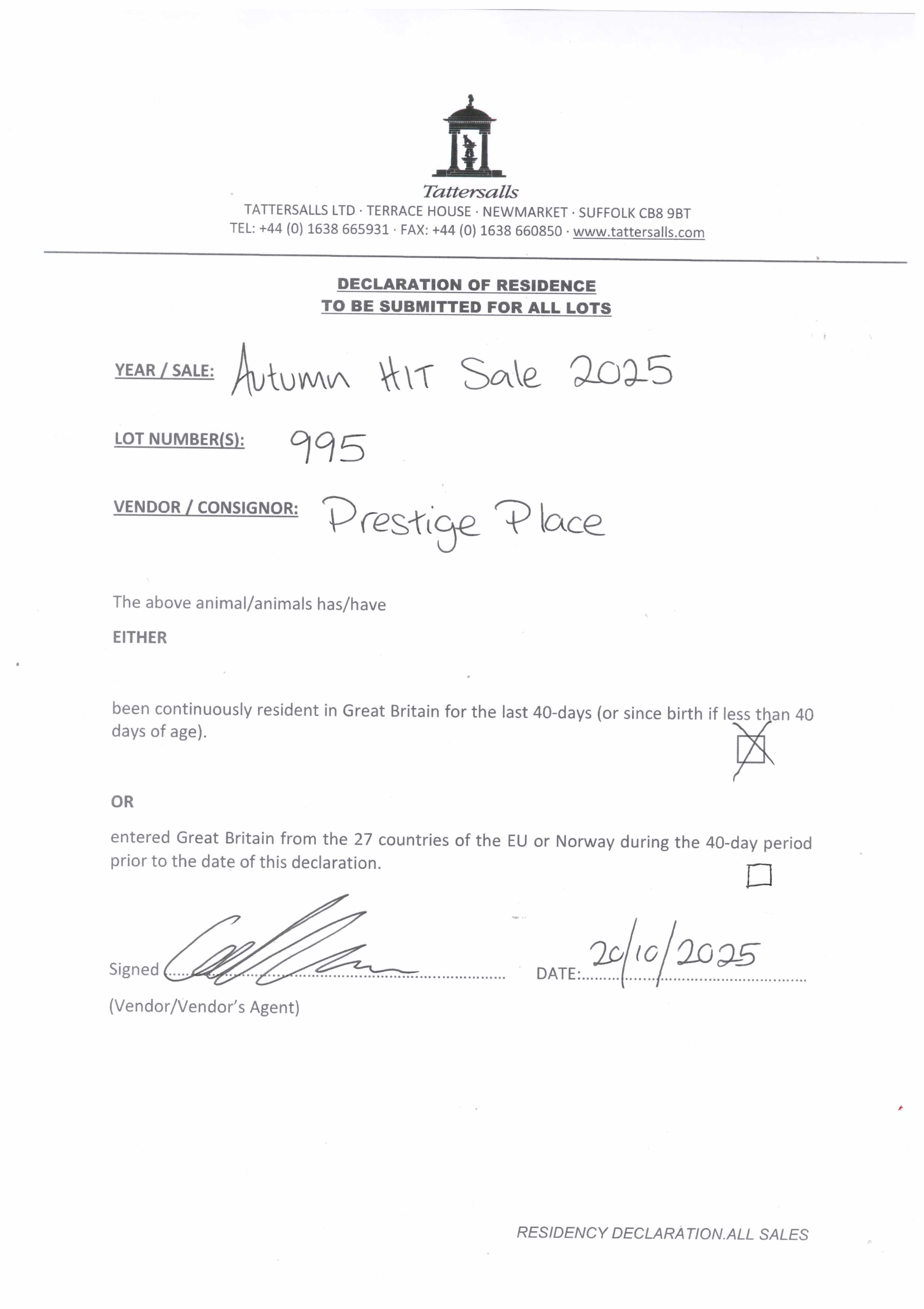 Consignor: Prestige Place (M. Botti)