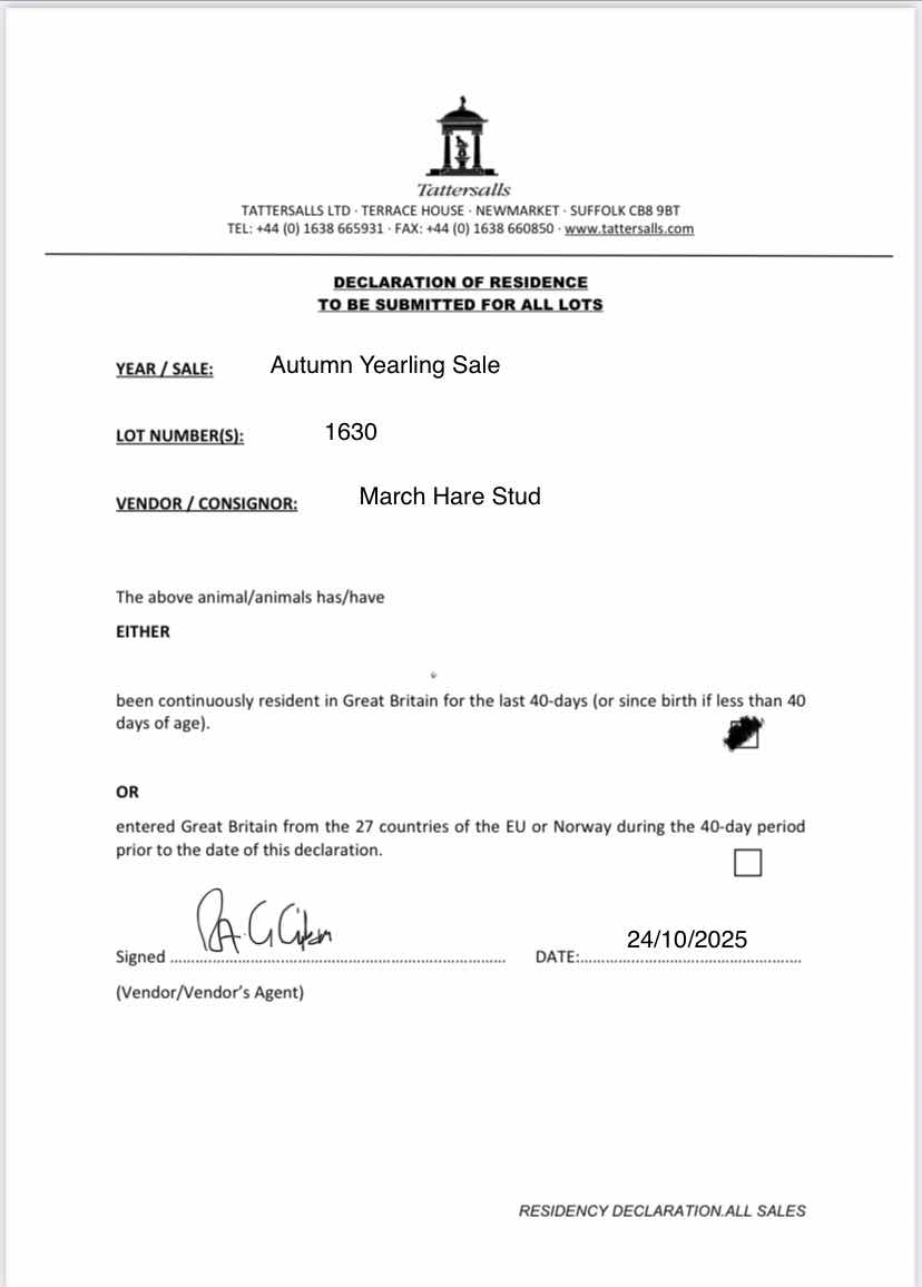 December Foal Sale 2024 lot 277, Whatton Manor Stud=>Vendor 1,000 gns