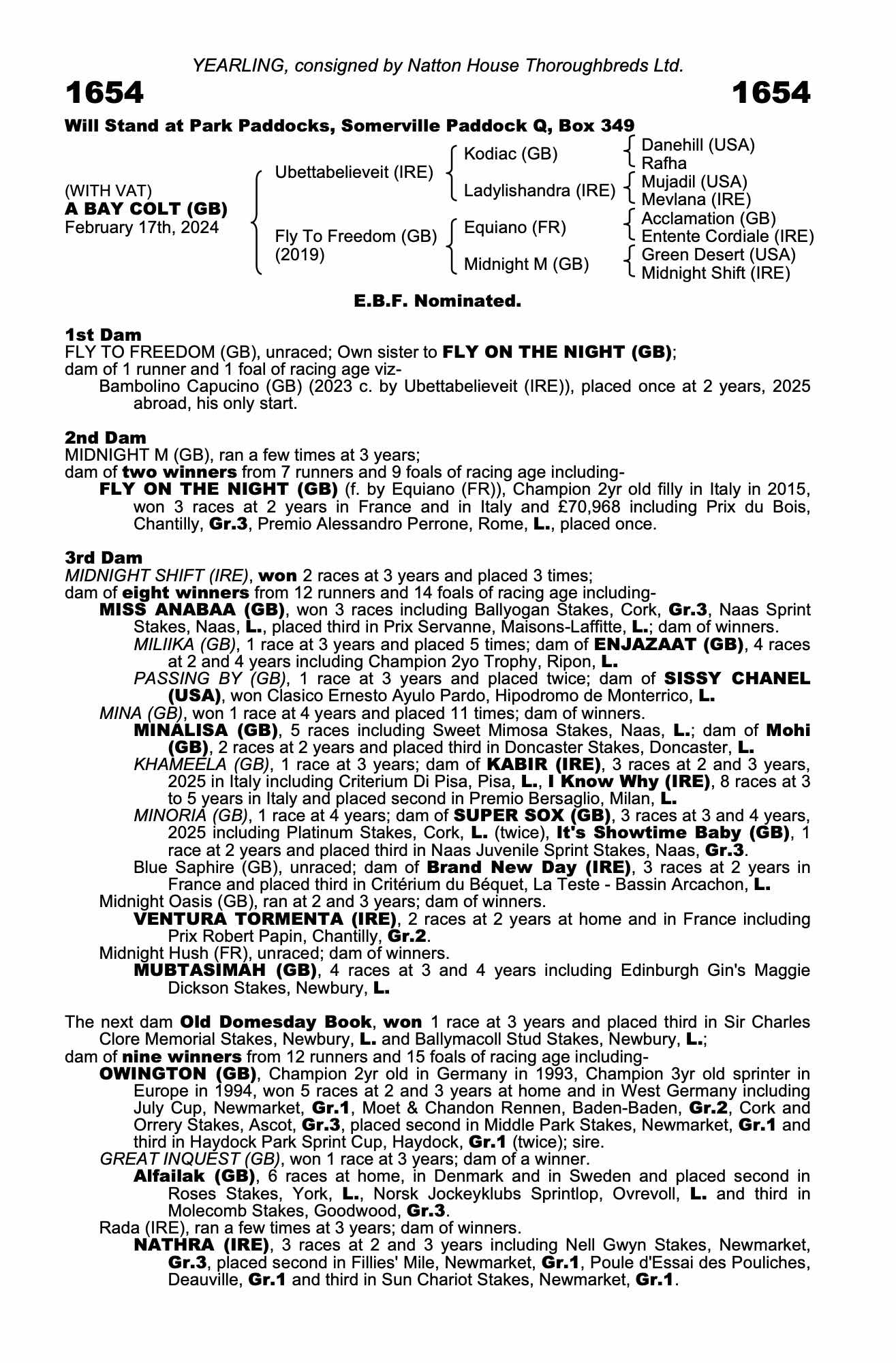 Lot 1654 Ubettabelieveit (IRE) /Fly To Freedom (GB) B.C. (GB)