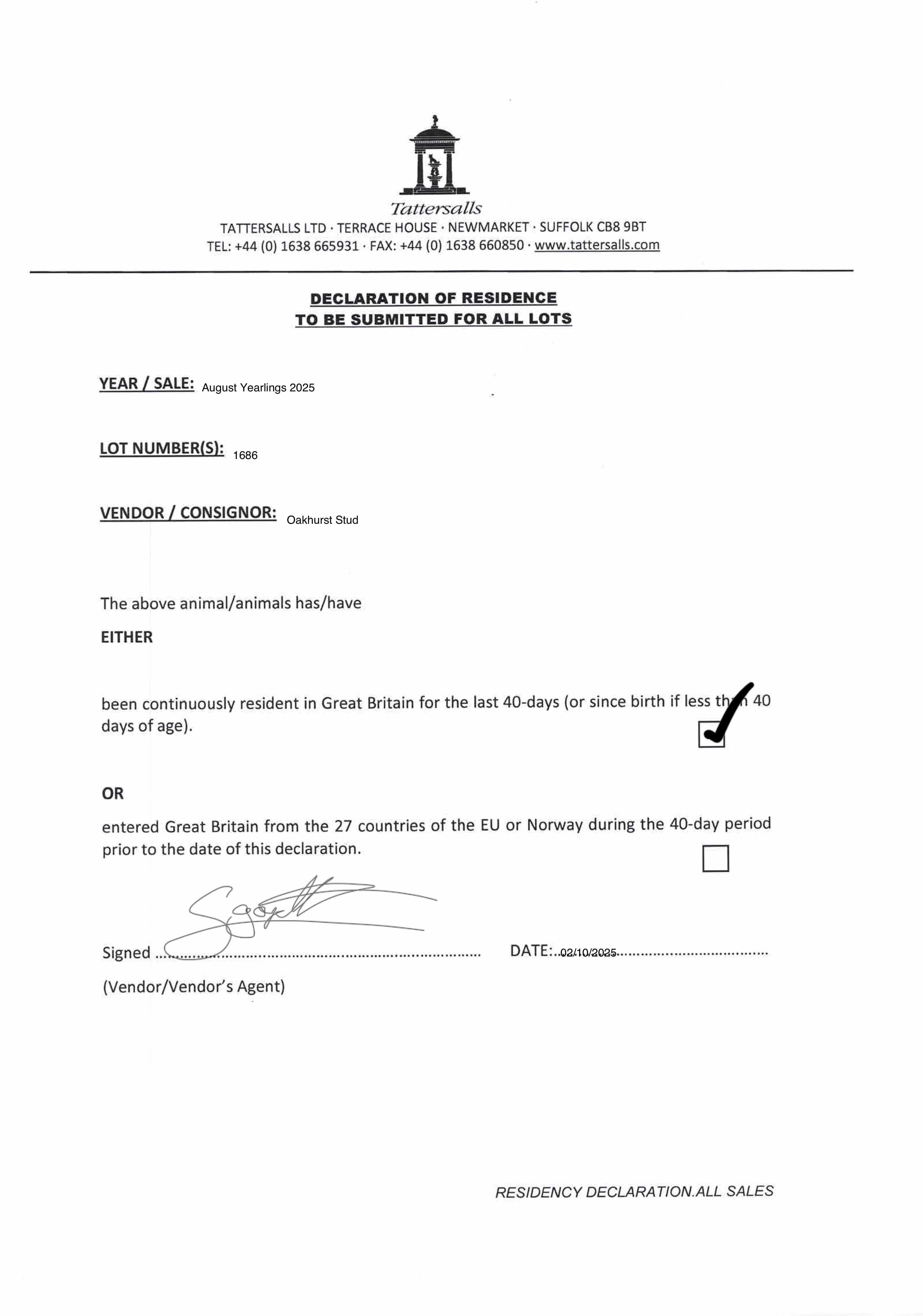 Consignor: Oakhurst Stud