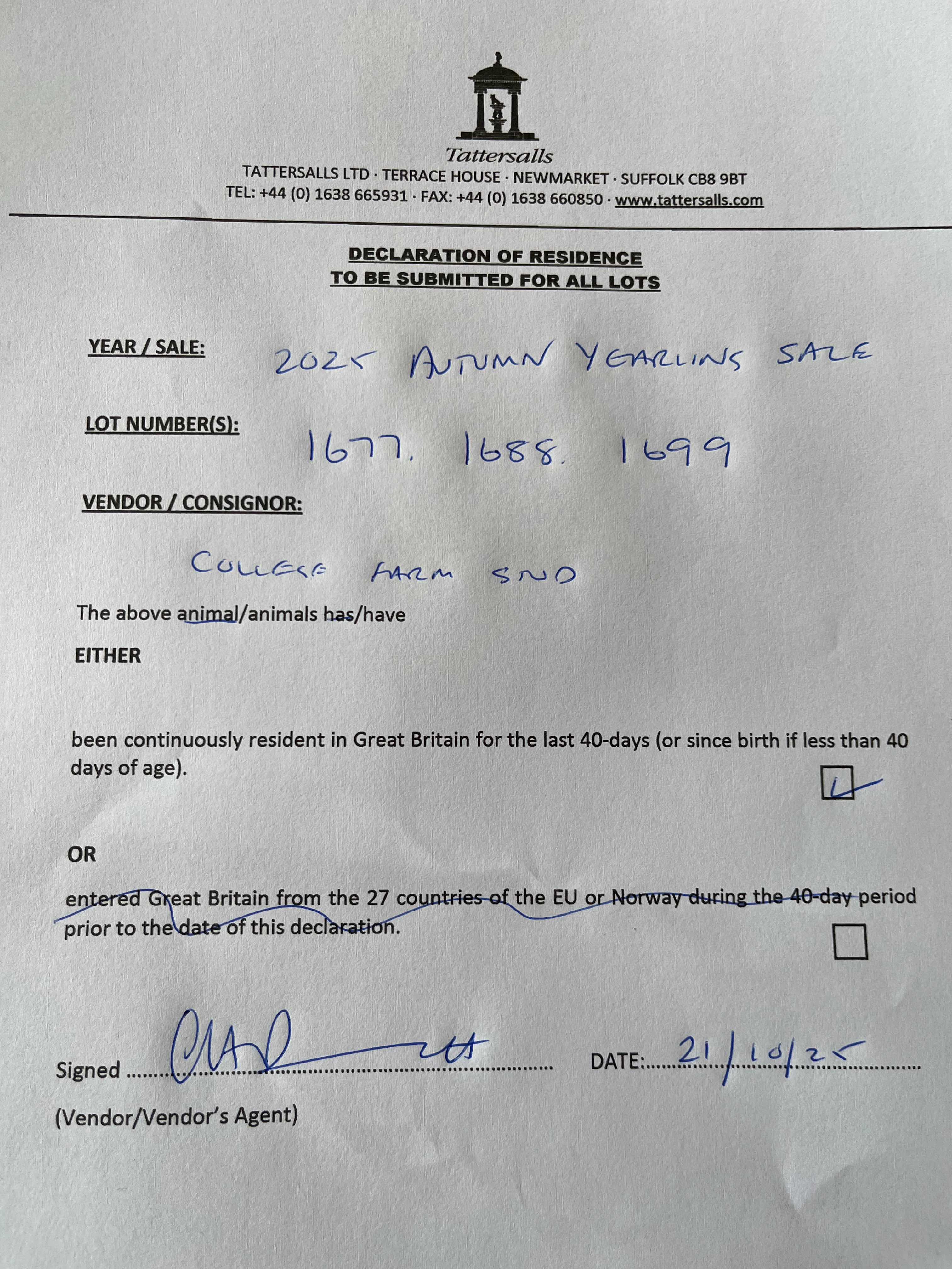 Consignor: College Farm Stud