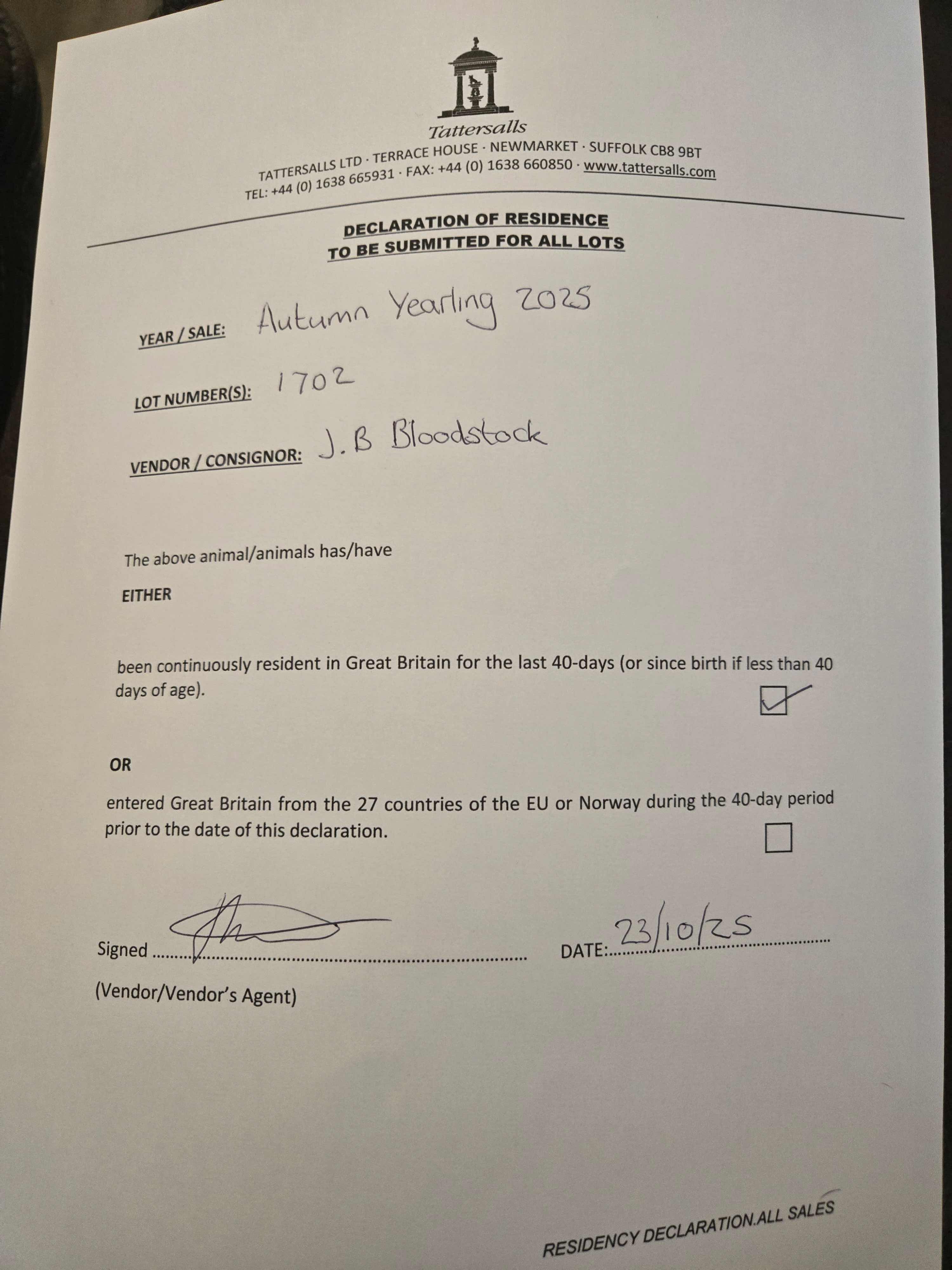 Consignor: J. B. Bloodstock Ltd.
