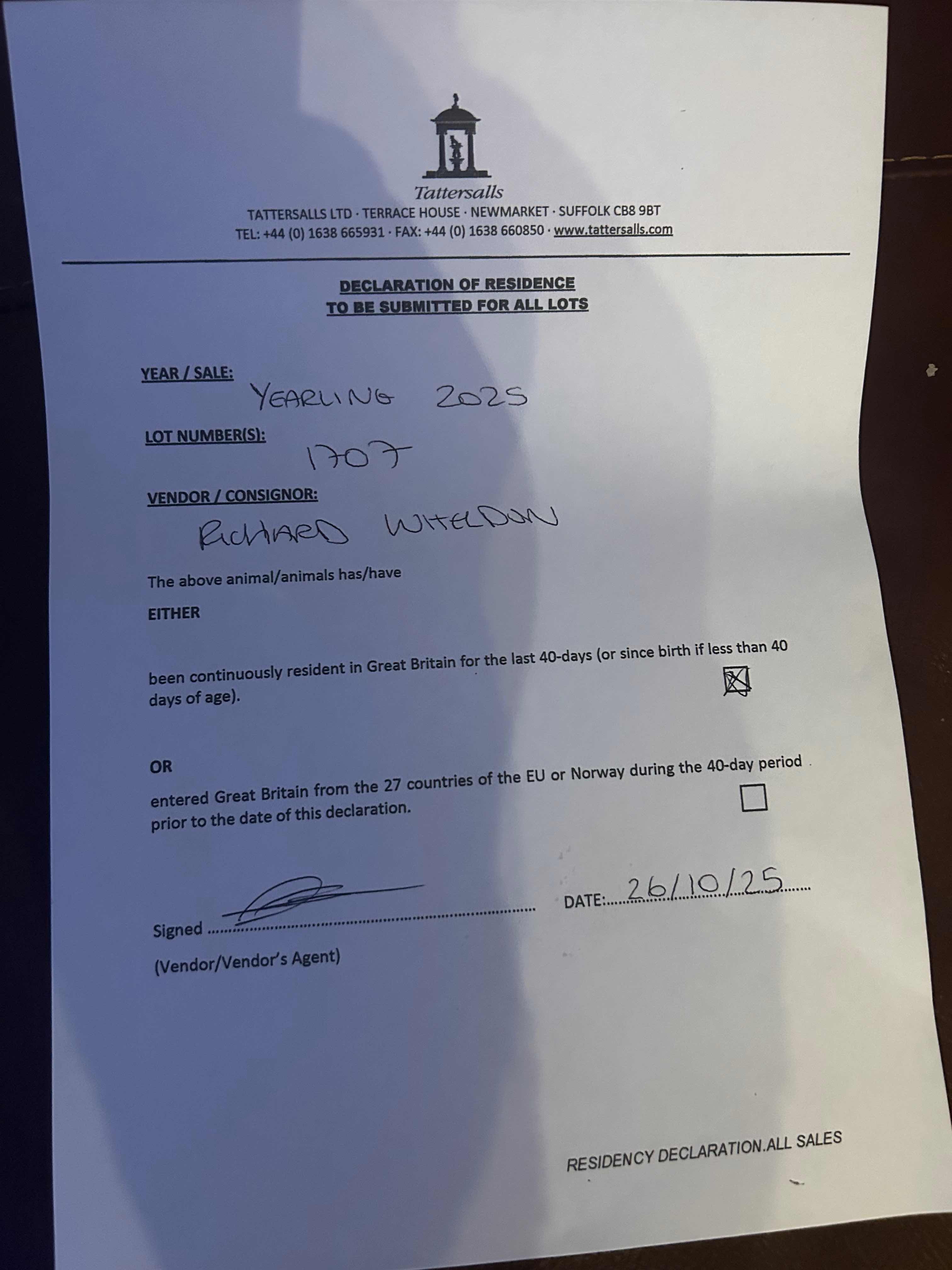 Consignor: Mr Richard Wheldon