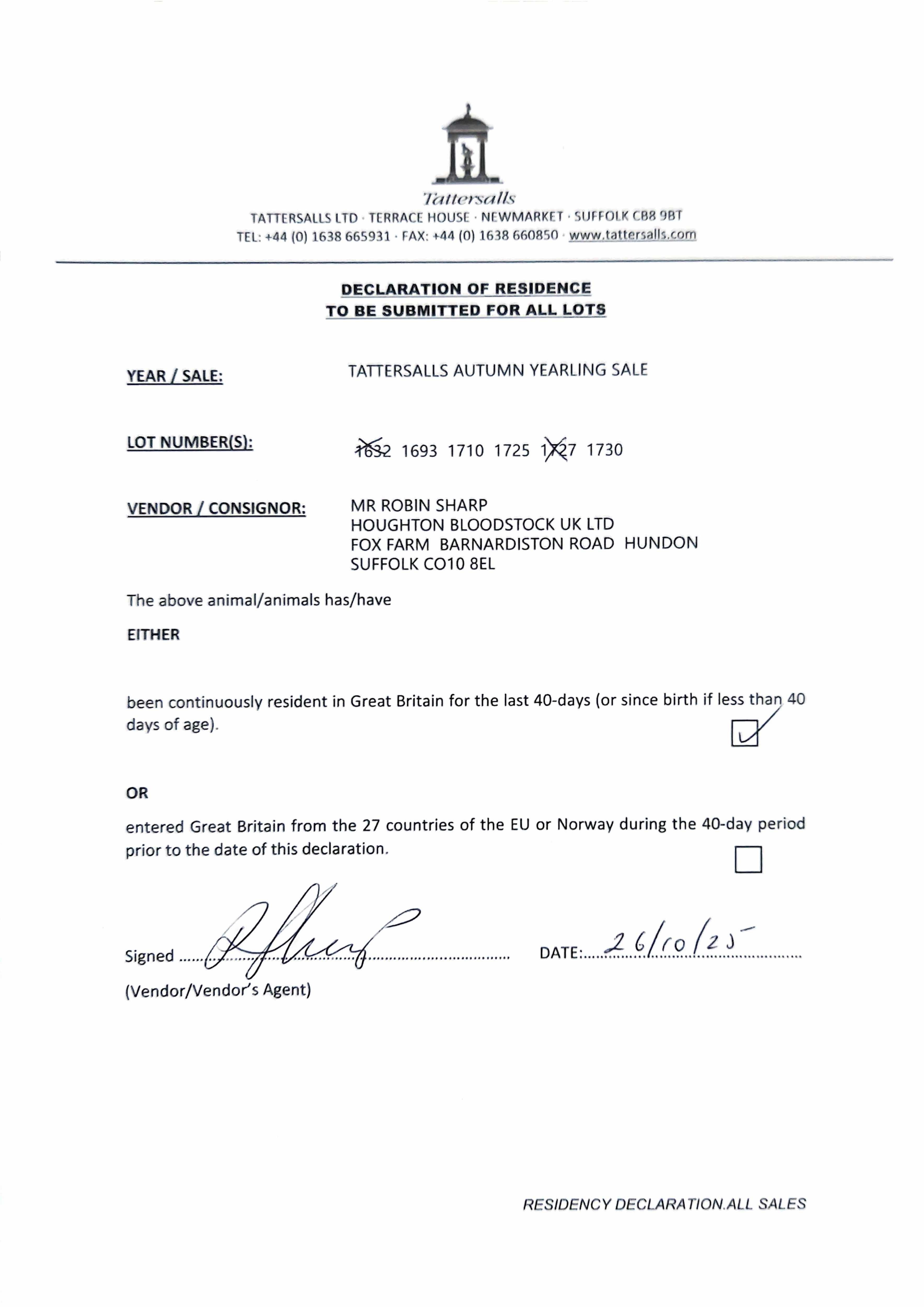 October Yearling Sale, Book 3 2024 lot 1545 F. by Cracksman (GB) 2023, Houghton Bloodstock=>Mayflower Stables 15,000 gns