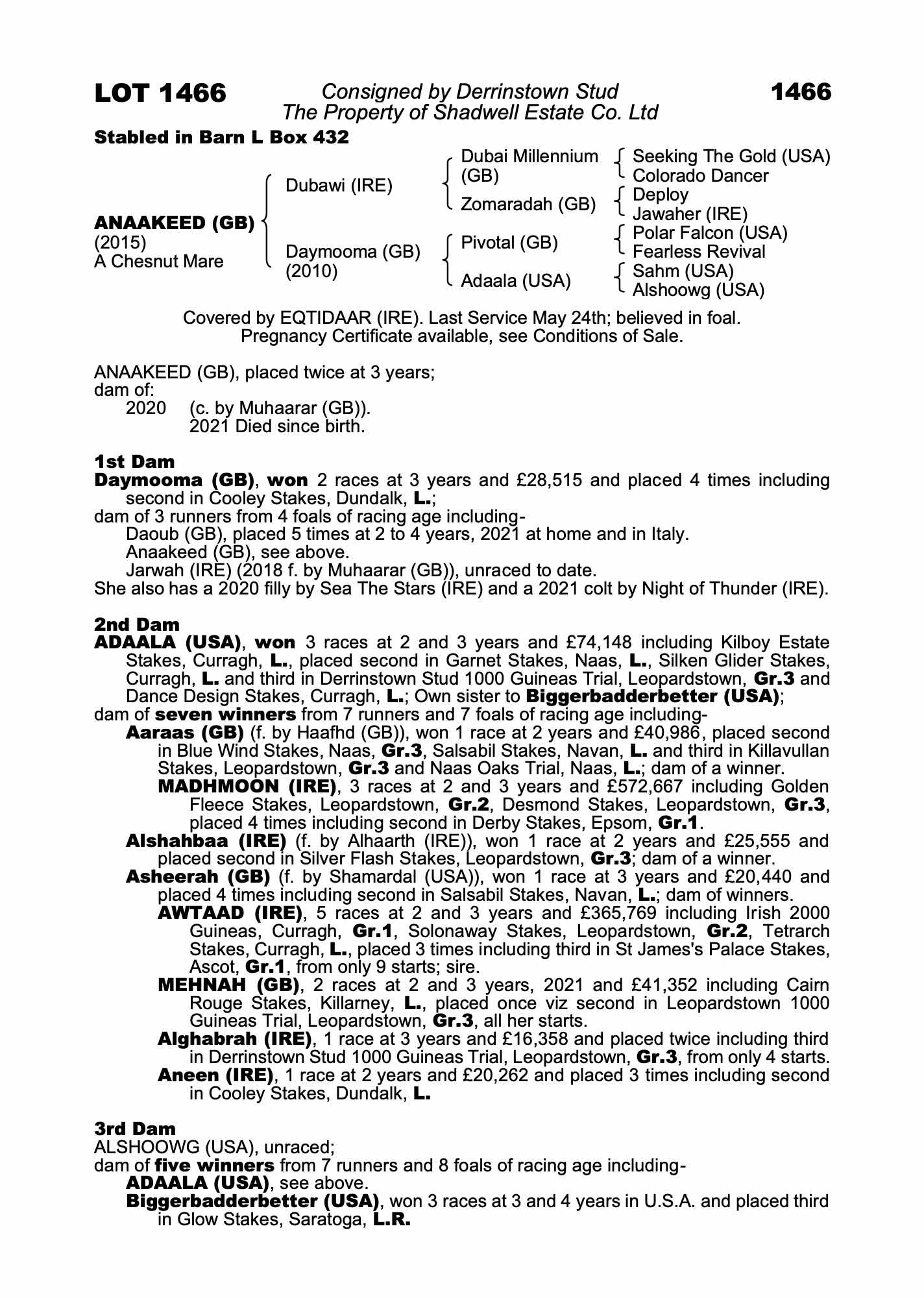 August Sale 2020 lot 549 Daoub (GB) (G. by Invincible Spirit (IRE)), Shadwell Stud=>Cristiano Fais 7,000 gns