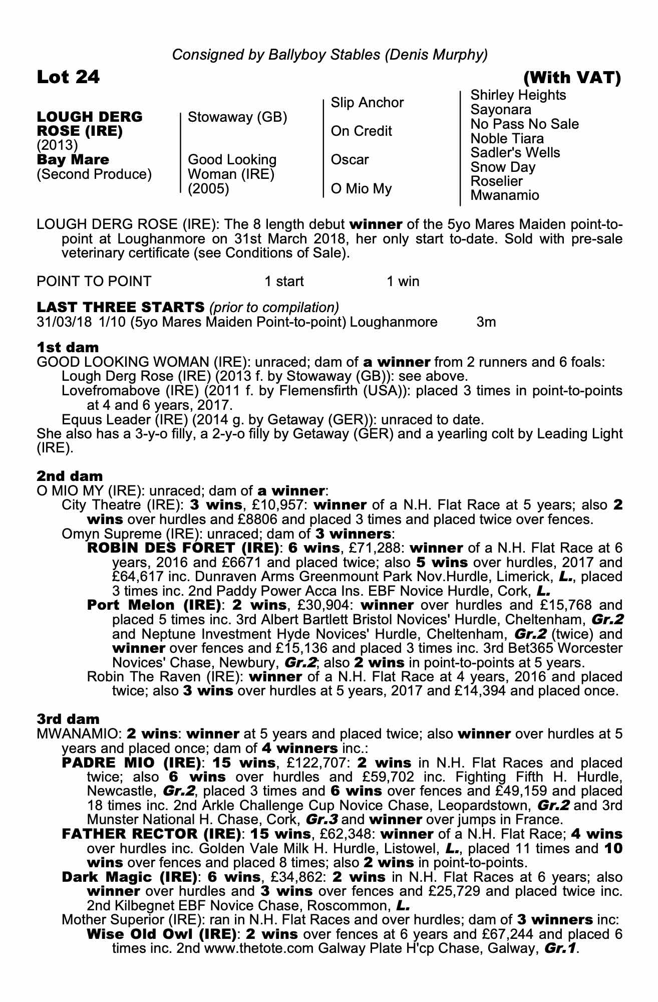 Lough Derg Rose produced a very taking debut performance when taking her five-year-old mares’ maiden at Loughanmore in March. One of four newcomers in the field, she was ridden patiently throughout before taking closer order at the penultimate fence where she progressed to lead before the final obstacle. She stayed on strongly in the closing stages and showed an impressive turn of foot to go away from her runner-up by eight lengths at the finish. The Denis Murphy-trained winner is out of a half-sister to the Grade two placed Port Melon. She is also from the family of the prolific winners Padre Mio and Father Rector. Lough Derg Rose showed an abundance of stamina along with a game attitude and won in the style of a mare who is destined for a profitable career on the track.