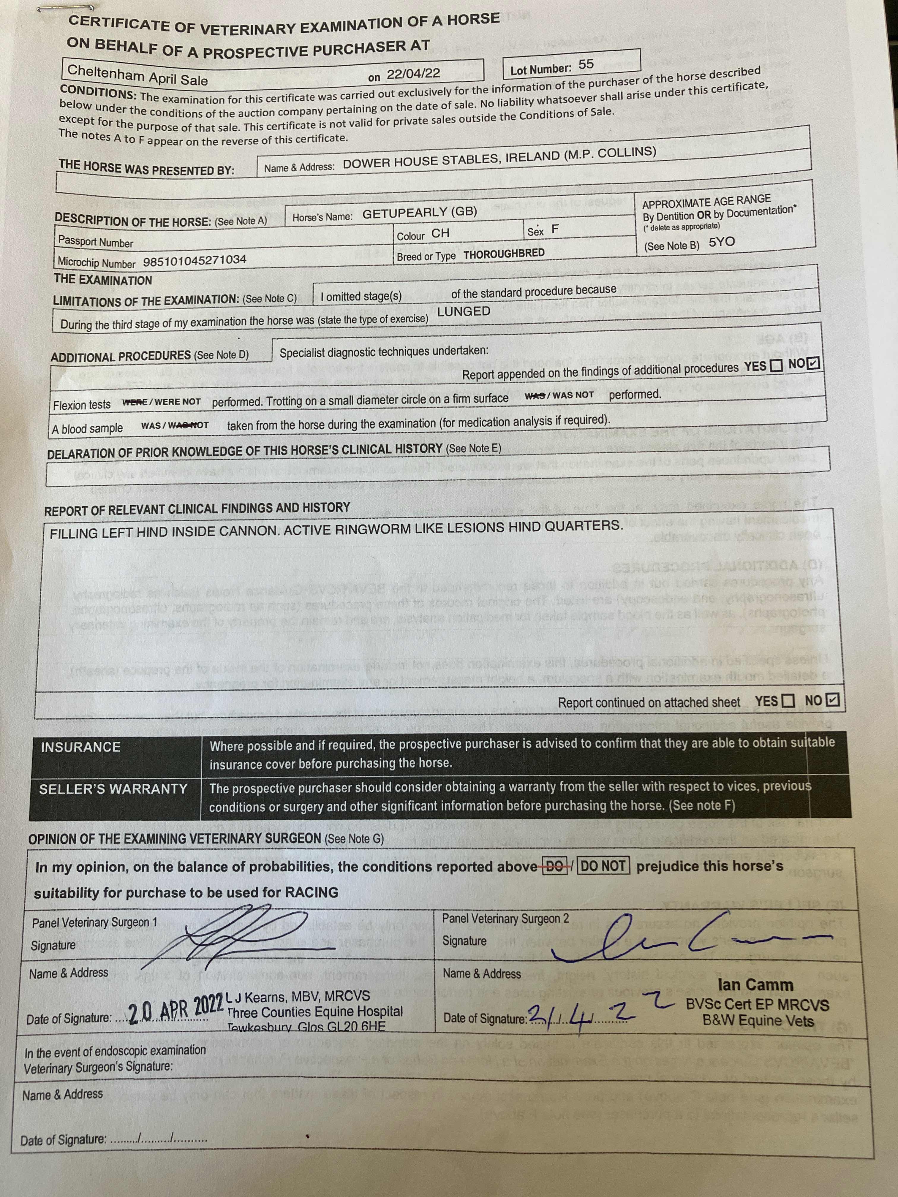 Cheltenham January Sale 2022 lot 36, Dower House Stables, Ireland (M. P. Collins)=>Vendor £50,000