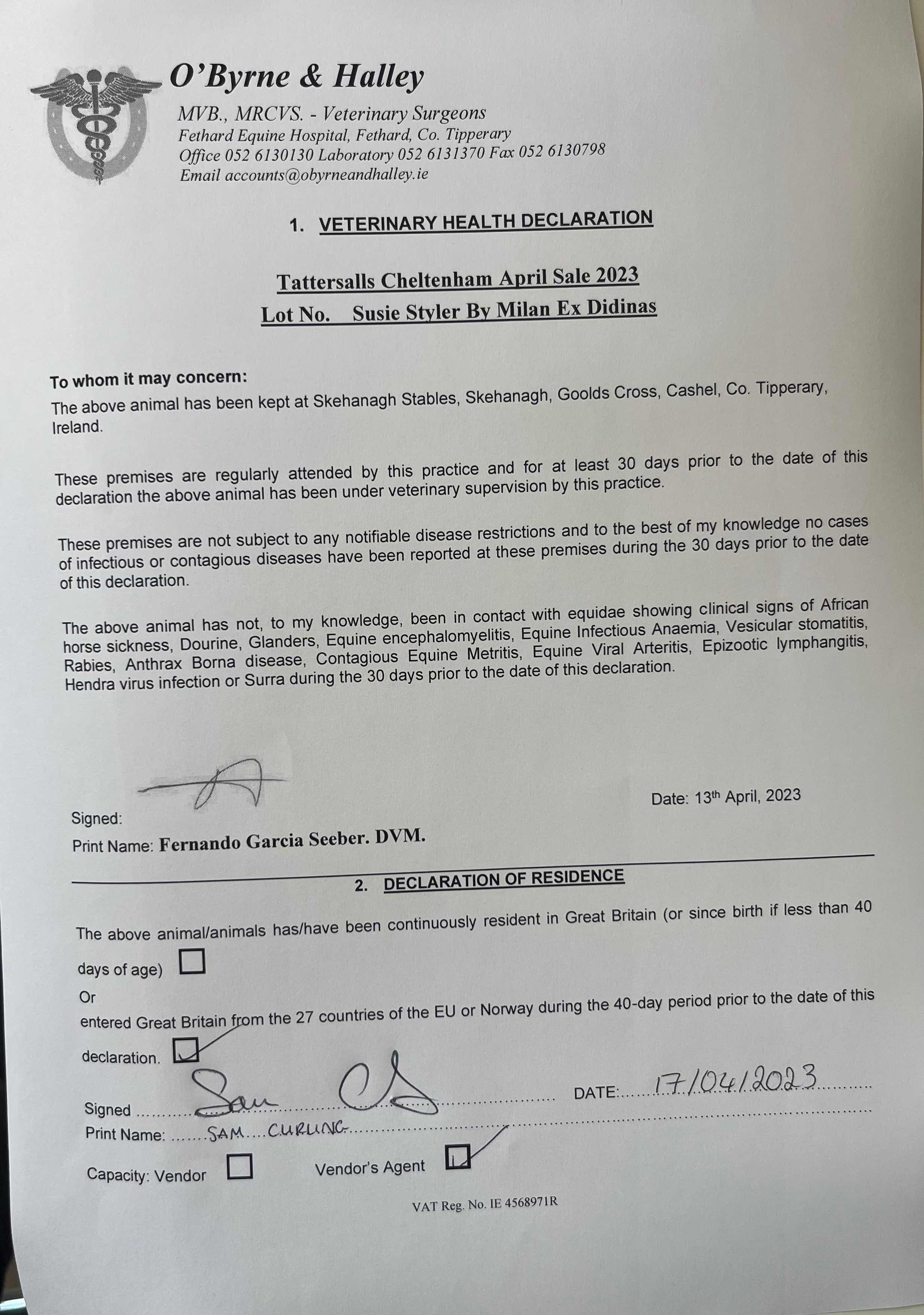 Consignor: Skehanagh Stables, Ireland (S. Curling)