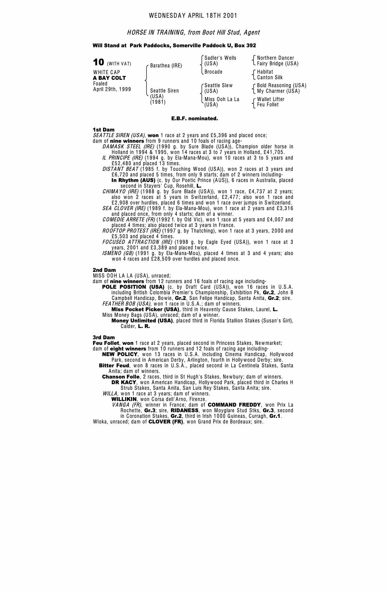 September Yearling Sale 2001 lot 530 F. by Titus Livius (FR) 2000, J.Costello=>John Berry €9,523