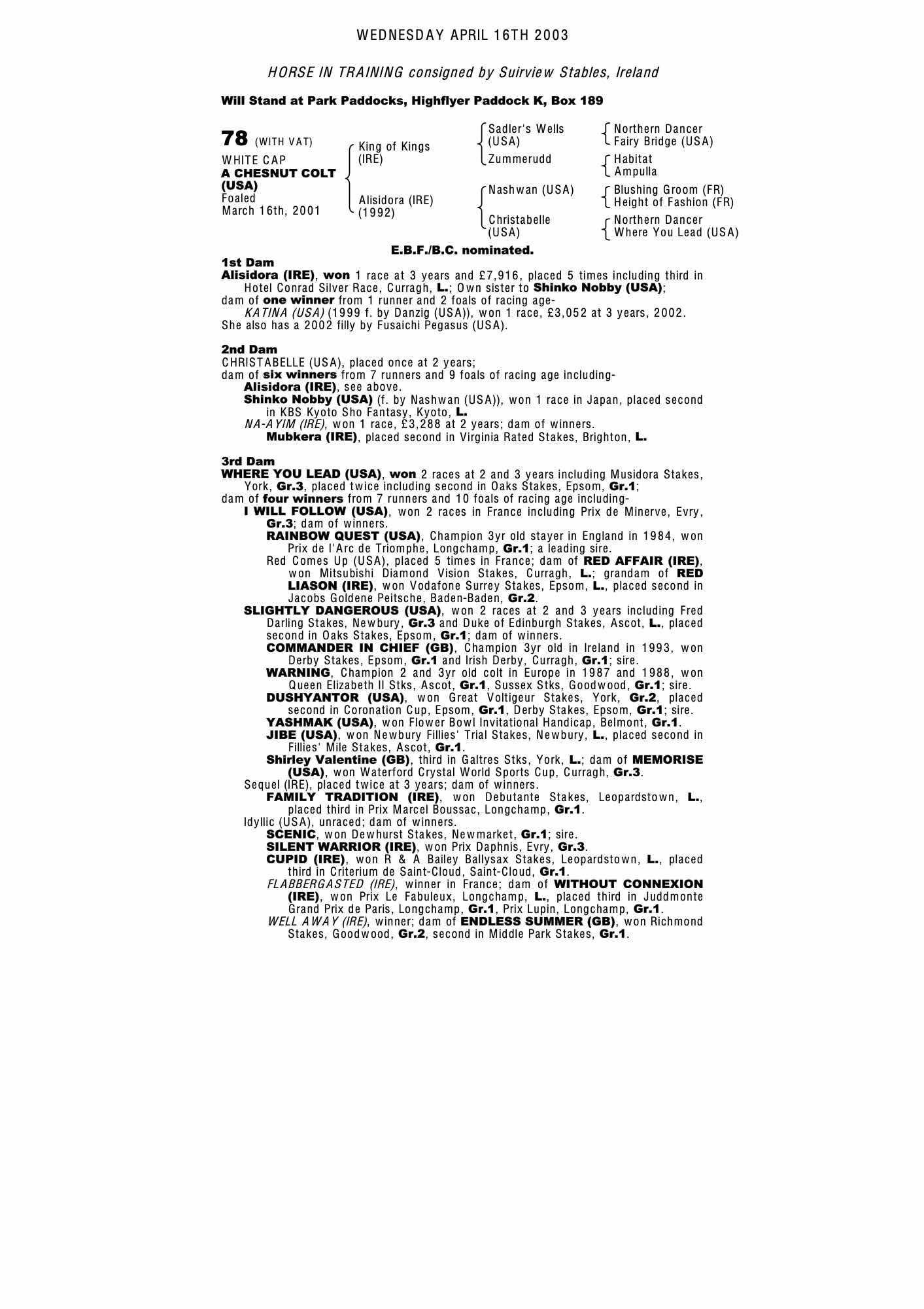 December Mare Sale 2002 lot 1868 Katina (USA) (F. by Danzig (USA)), Voute Sales, Agent=>Lot Not Sold 28,000 gns
