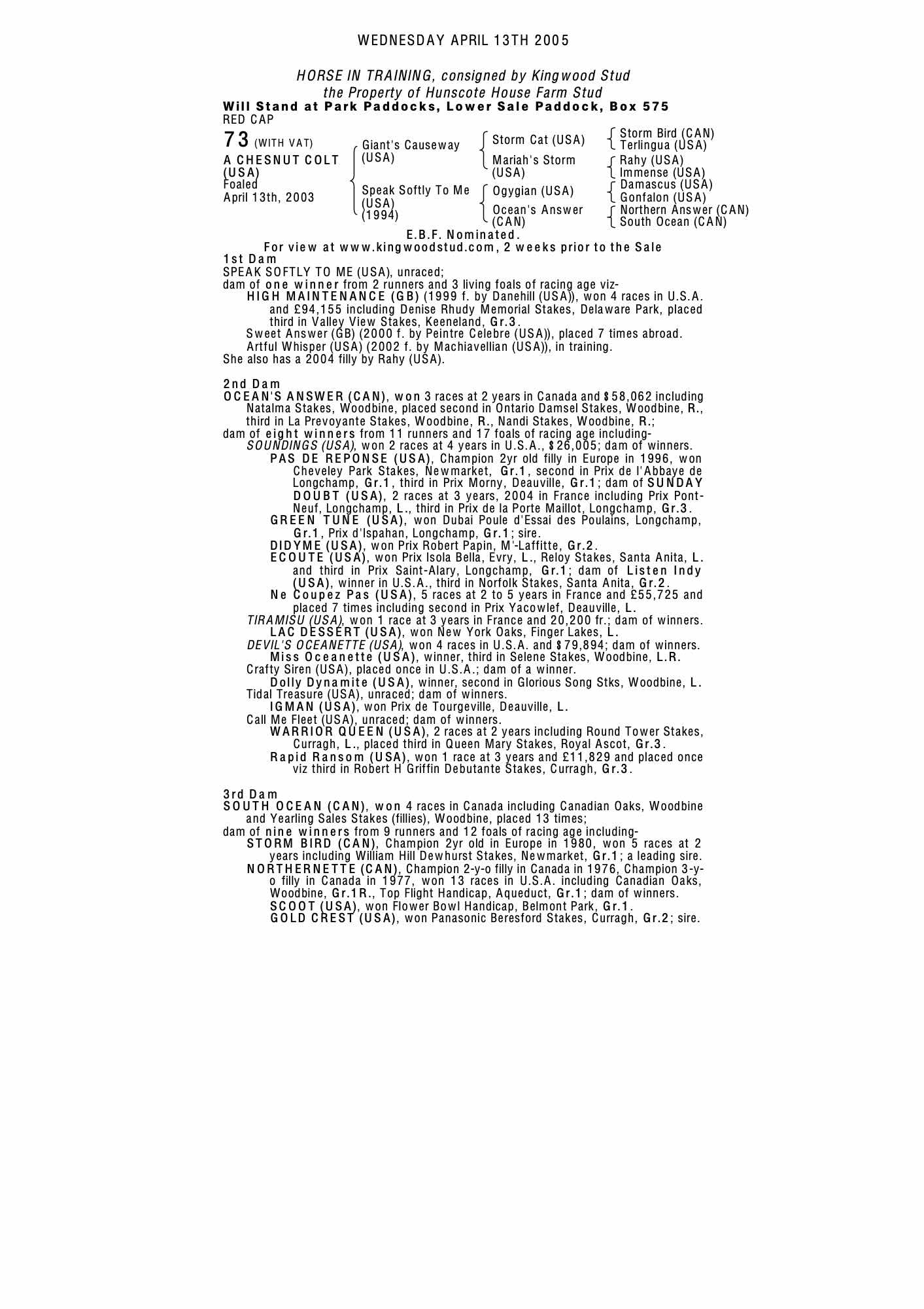 Houghton Yearling Sale 2003 lot 59 F. by Machiavellian (USA) 2002, Hunscote House Farm Stud=>Lot Not Sold 80,000 gns