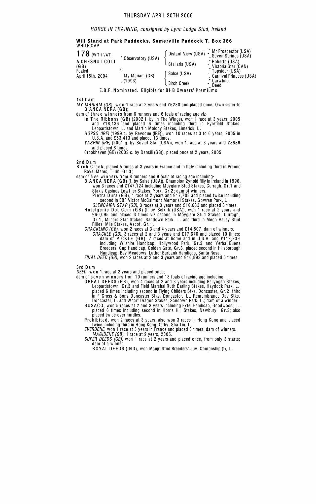 December Yearling Sale 2005 lot 83, Owdeswell Manor Stud=>Margaret O'Toole 35,000 gns
