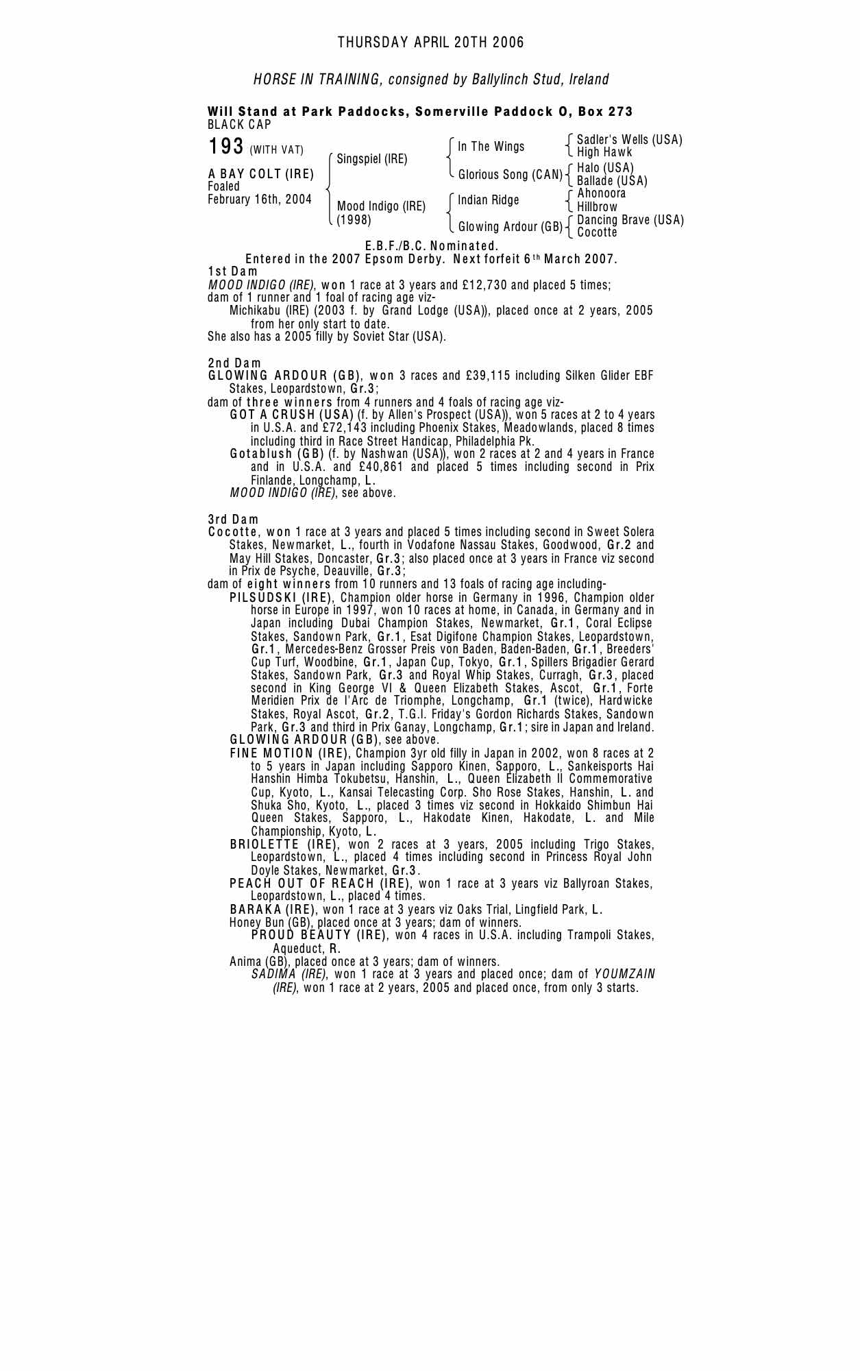 October Yearling Sale, Book 1 2005 lot 431, Ballylinch Stud, Ireland=>Lot Not Sold 24,000 gns