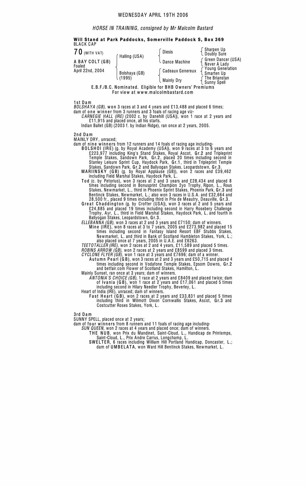 October Yearling Sale, Book 1 2005 lot 113, Furnace Mill Stud=>Lot Not Sold 47,000 gns
