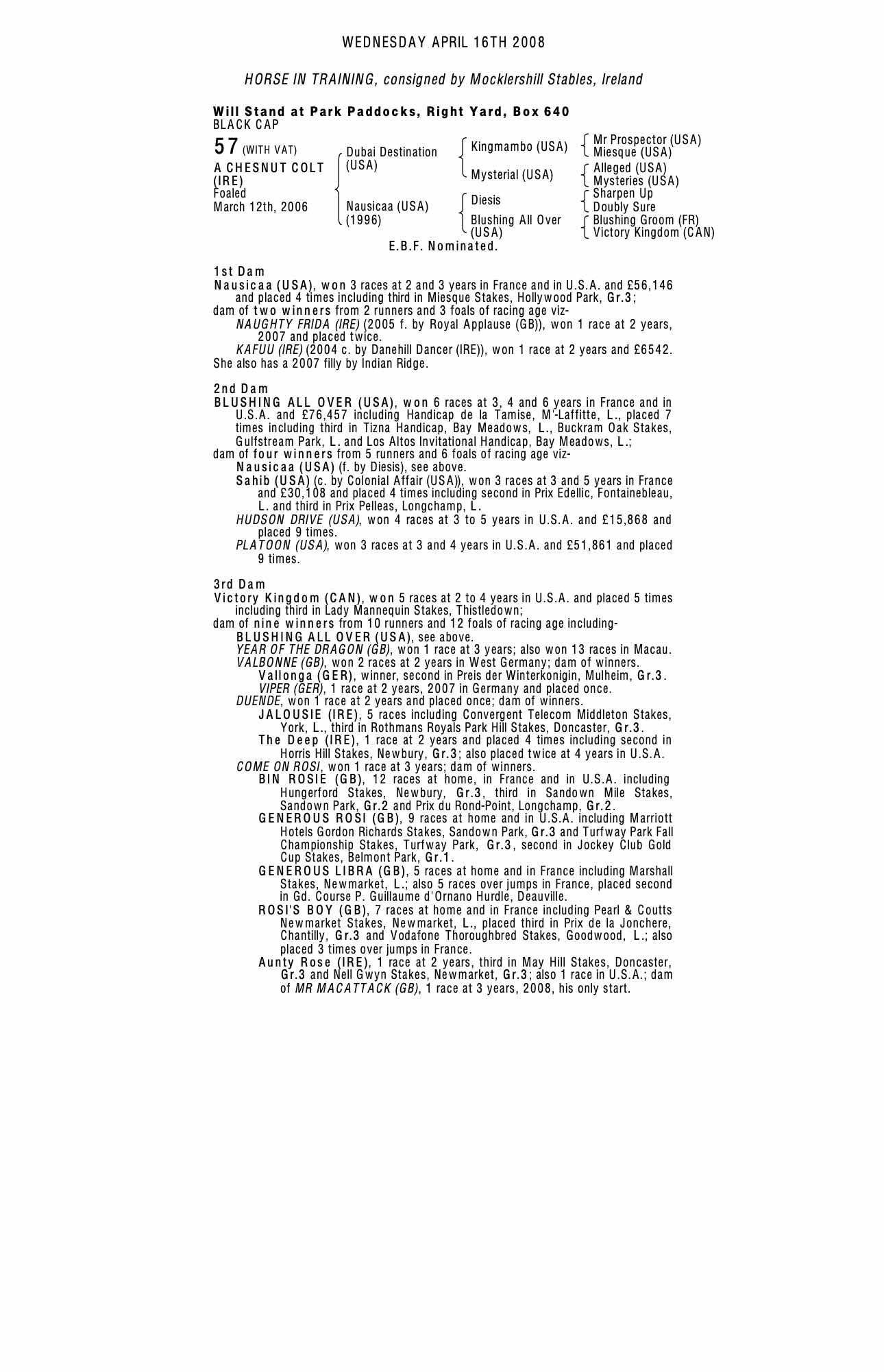 October Yearling Sale, Book 1 2007 lot 220, Swordlestown Stud, Ireland=>Willie Browne 45,000 gns
