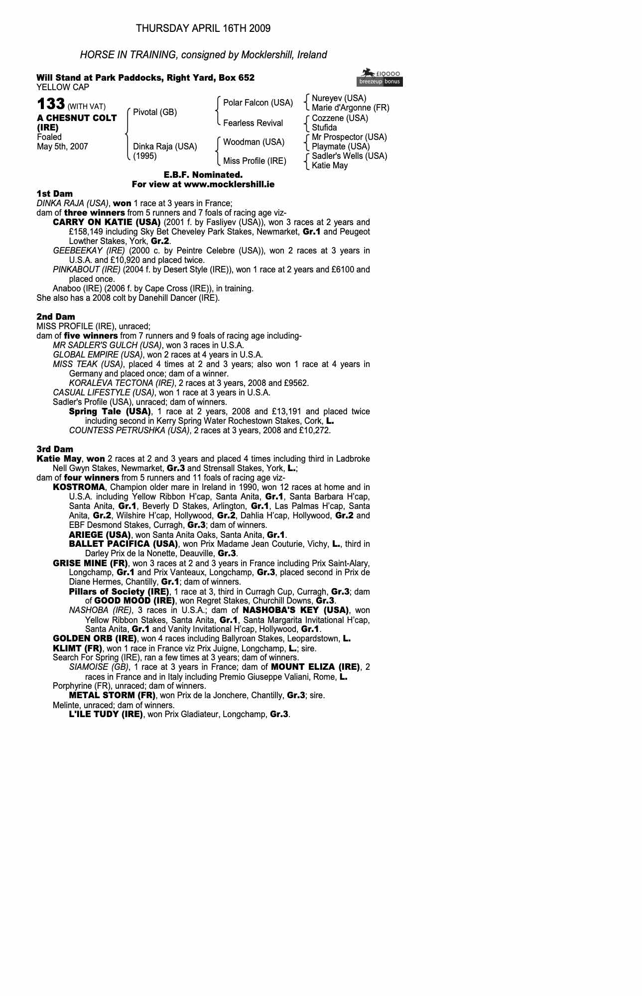 October Yearling Sale, Book 1 2009 lot 352 C. by Danehill Dancer (IRE) 2008, Swordlestown Stud, Ireland=>Lot Not Sold 78,000 gns