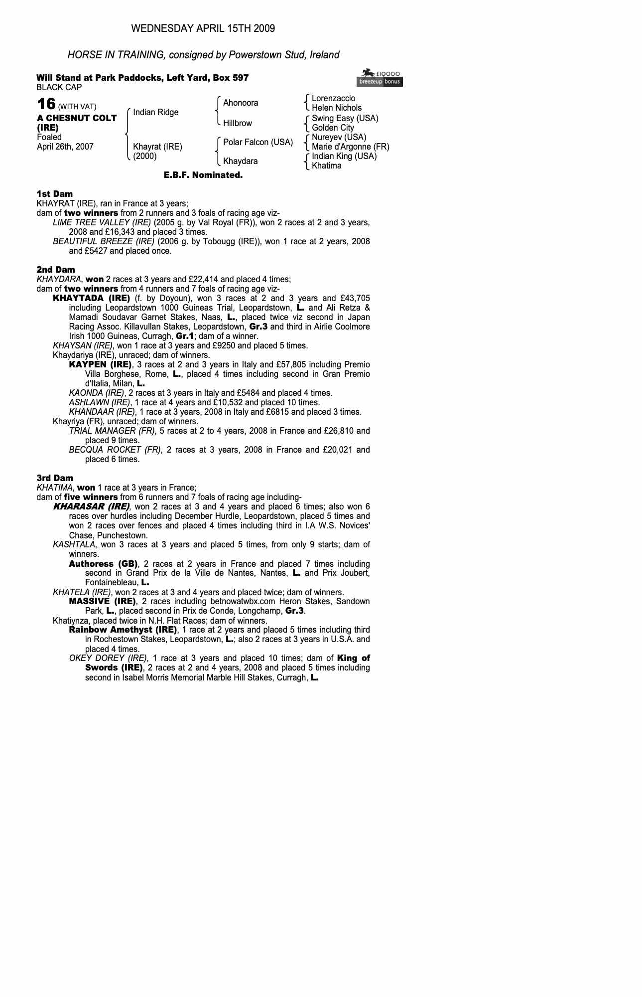 Consignor: Powerstown Stud, Ireland