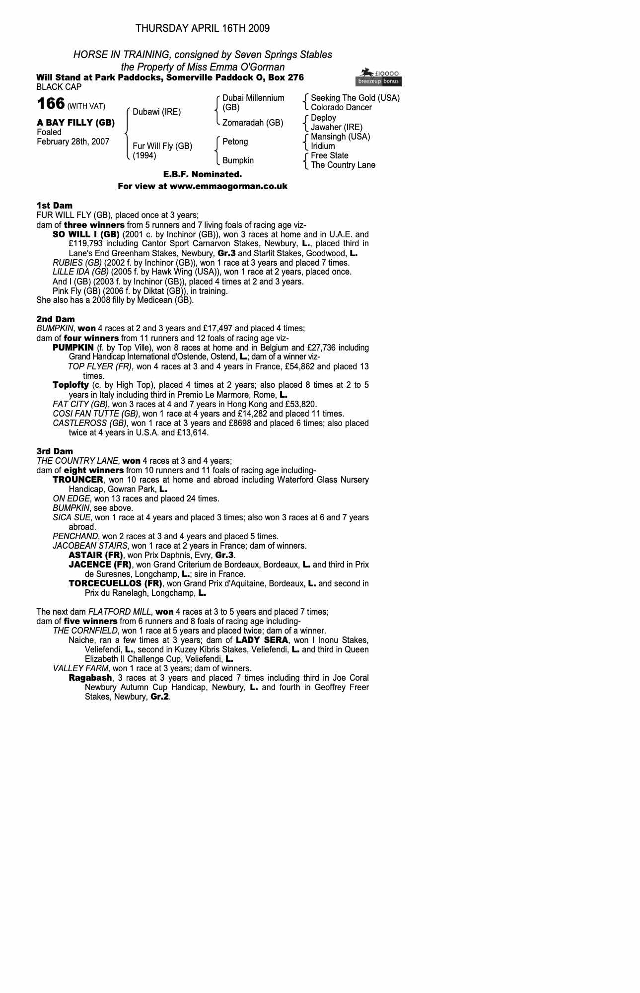October Yearling Sale, Book 1 2008 lot 531 F. 2007, Templeton Stud=>Emma O'Gorman 30,000 gns