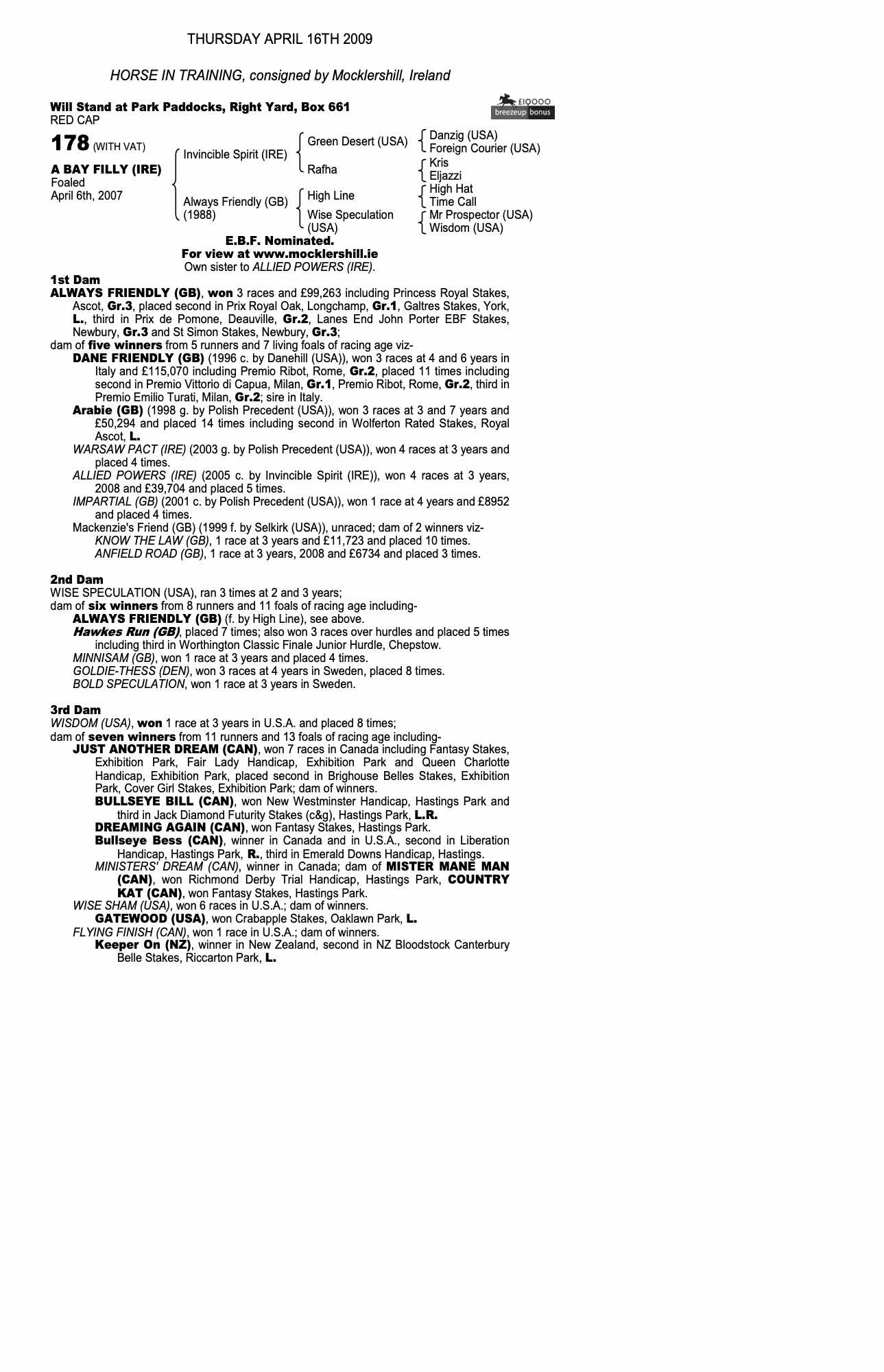 Invincible Spirit (IRE) / Always Friendly (GB) B.F. (IRE)