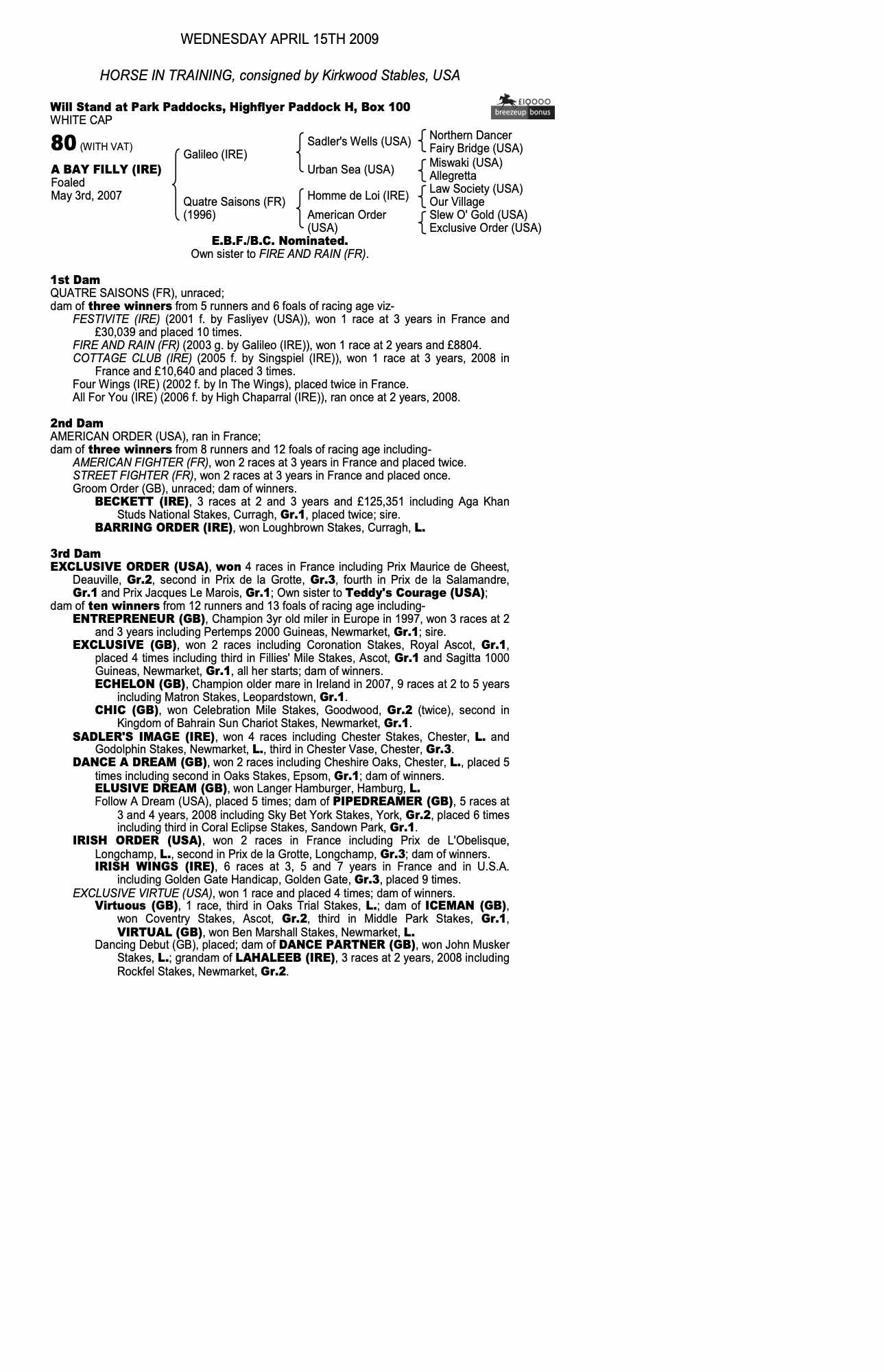 October Yearling Sale, Book 1 2003 lot 594 F. by In The Wings 2002, Haras du Mezeray, France=>Lot Not Sold 19,000 gns