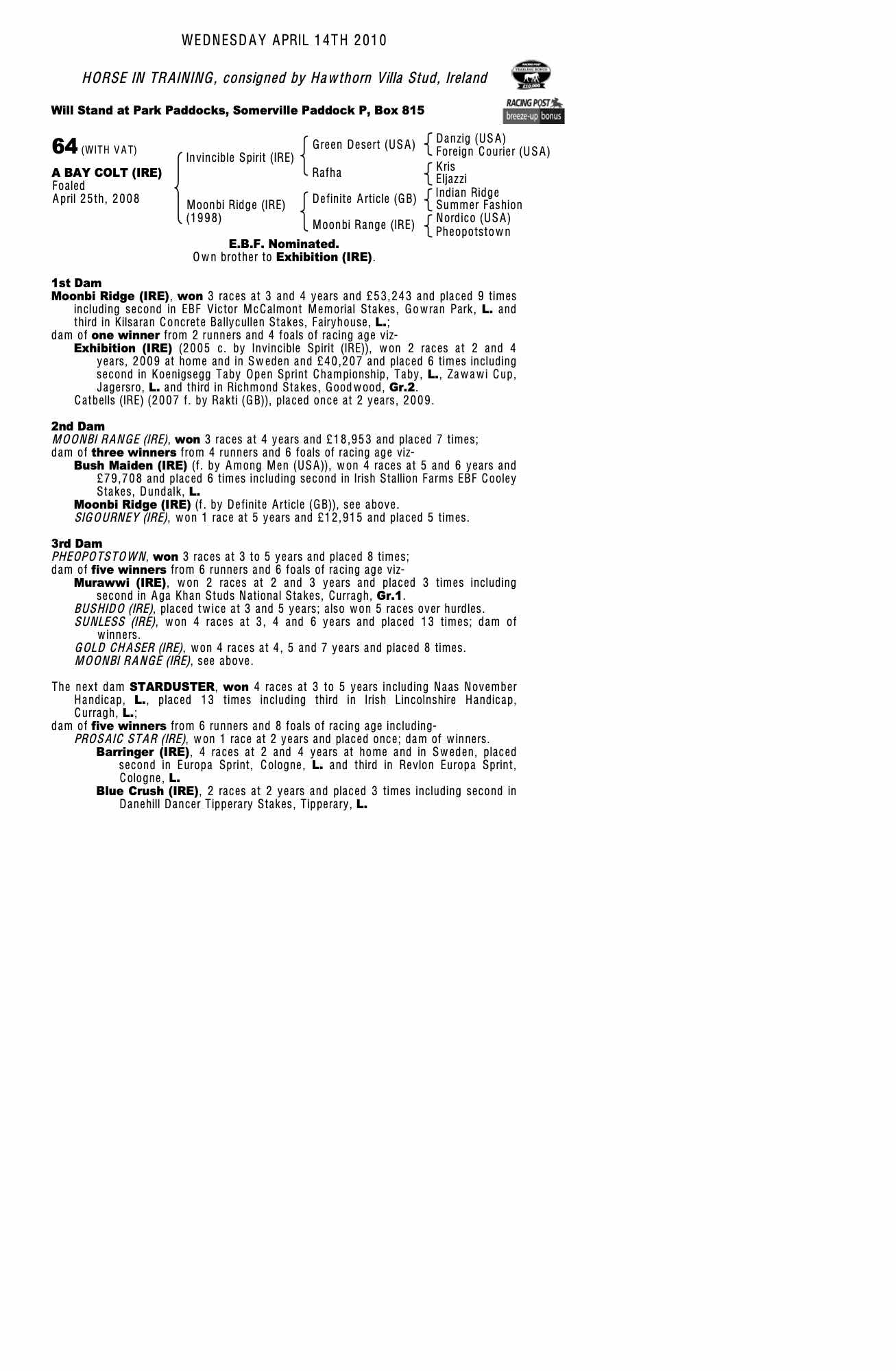 Invincible Spirit (IRE) / Moonbi Ridge (IRE) B.C. (IRE)