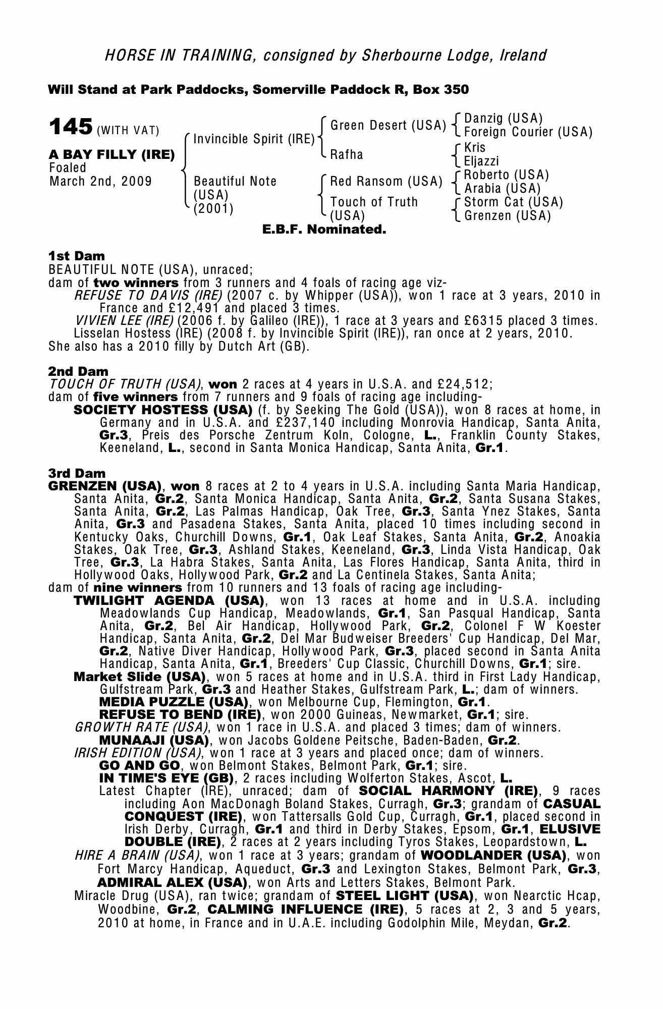 October Yearling Sale, Book 1 2010 lot 96, Sherbourne Lodge, Ireland (Agent)=>Vendor 45,000 gns