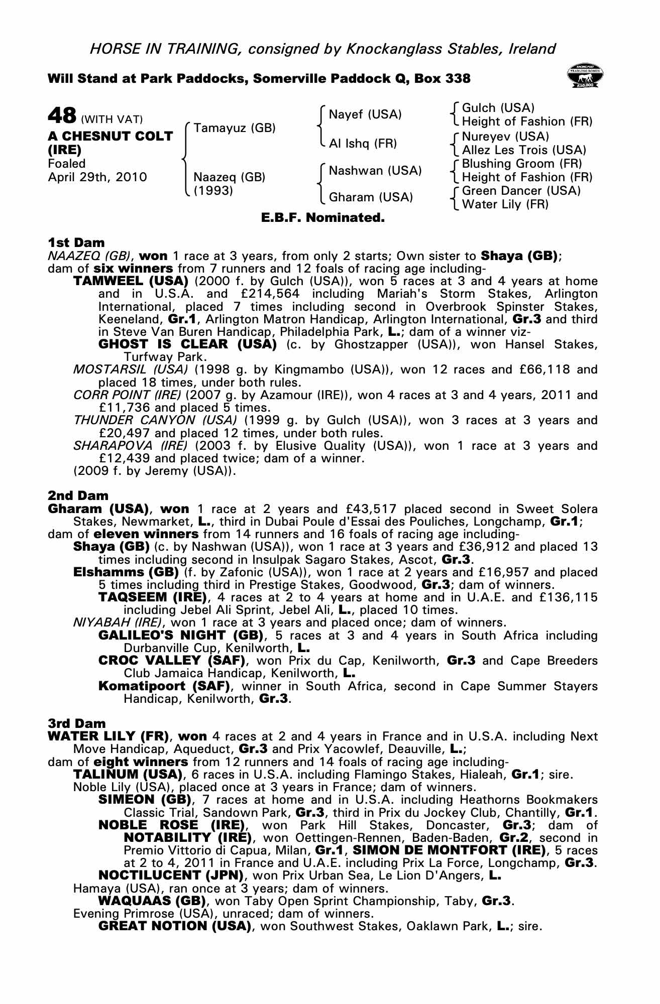 October Yearling Sale, Book 1 2004 lot 537 F. by Elusive Quality (USA) 2003, Newtown Stud, Ireland=>Vendor 70,000 gns
