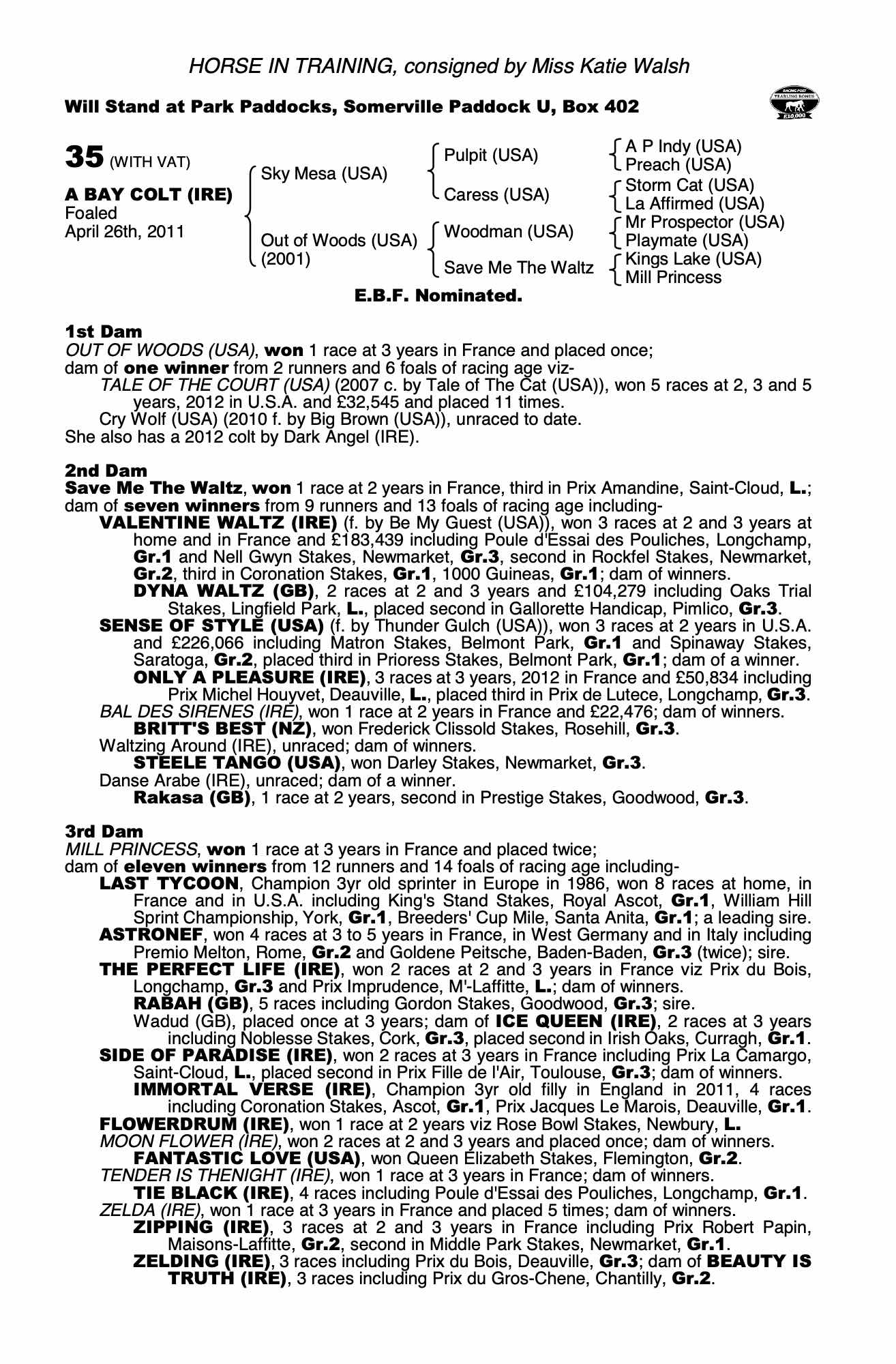 October Yearling Sale, Book 2 2012 lot 870, Knocktoran Stud, Ireland=>Katie Walsh 18,000 gns