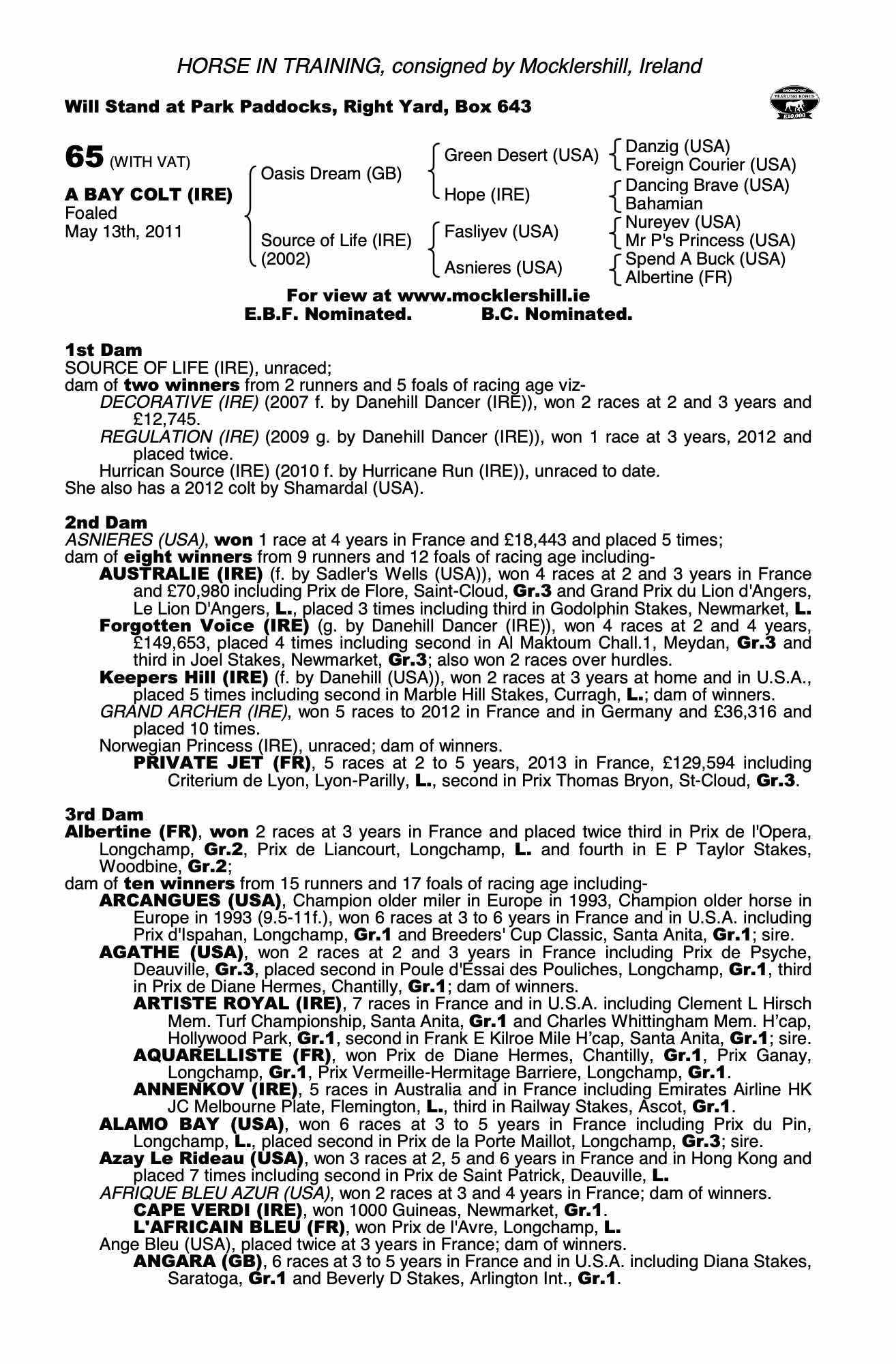 December Yearling Sale 2012 lot 195, Barouche Stud (Ireland) Ltd.=>Willie Browne 65,000 gns