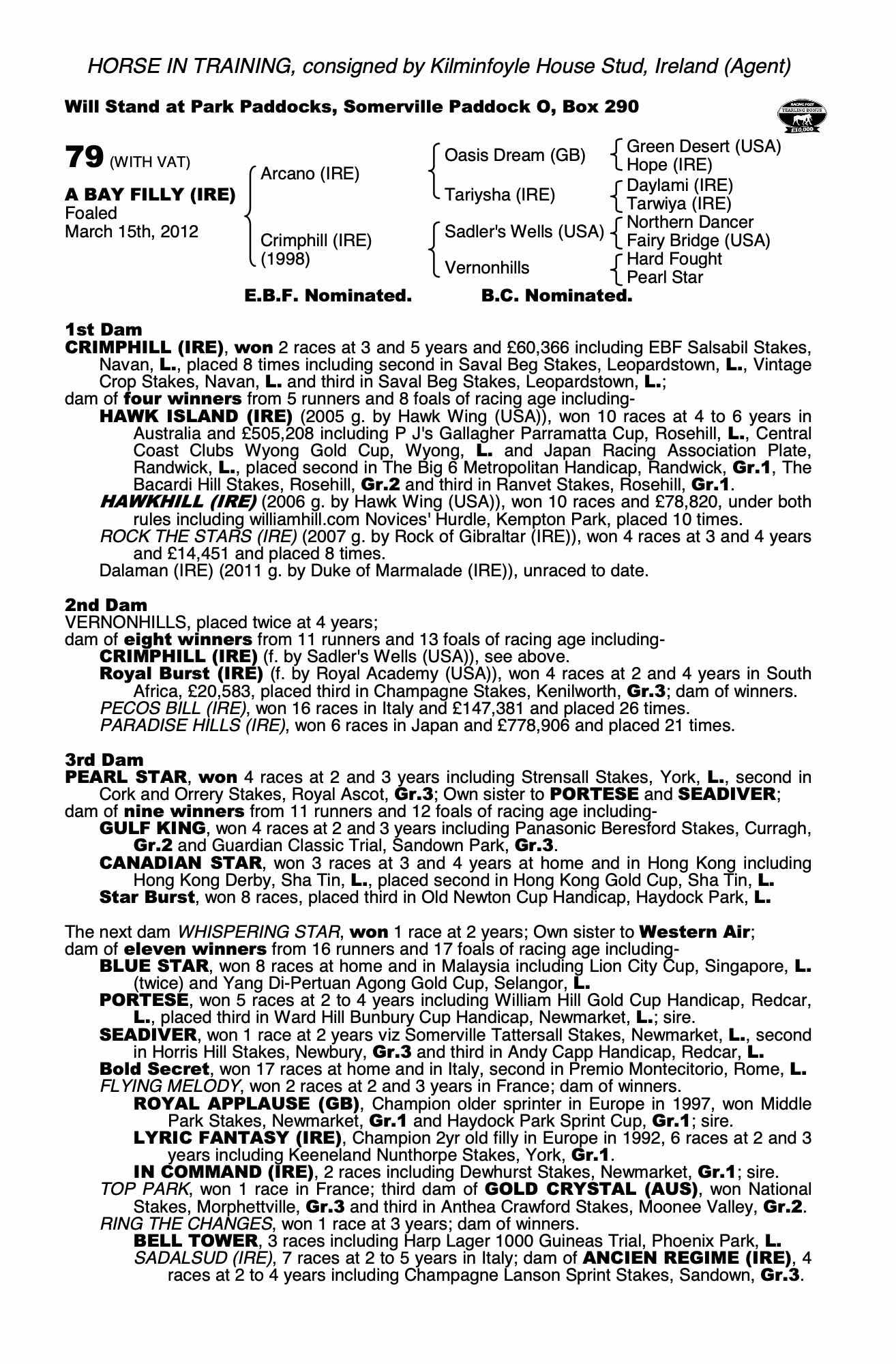 Consignor: Kilminfoyle House Stud, Ireland (Agent)