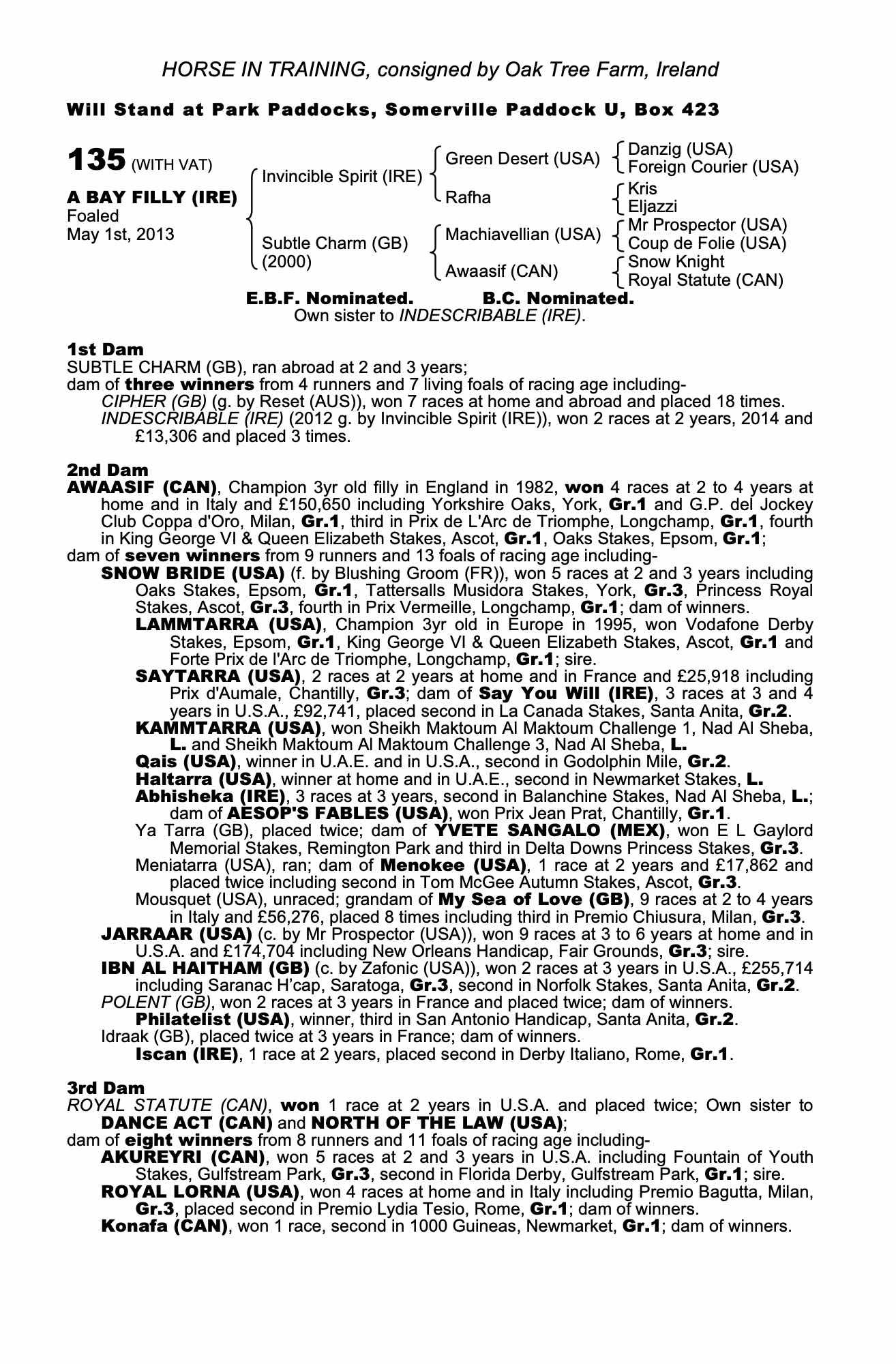 July Sale 2018 lot 629 Gaja (IRE) (F. by High Chaparral (IRE)), George Scott Racing=>AC Whillans 800 gns