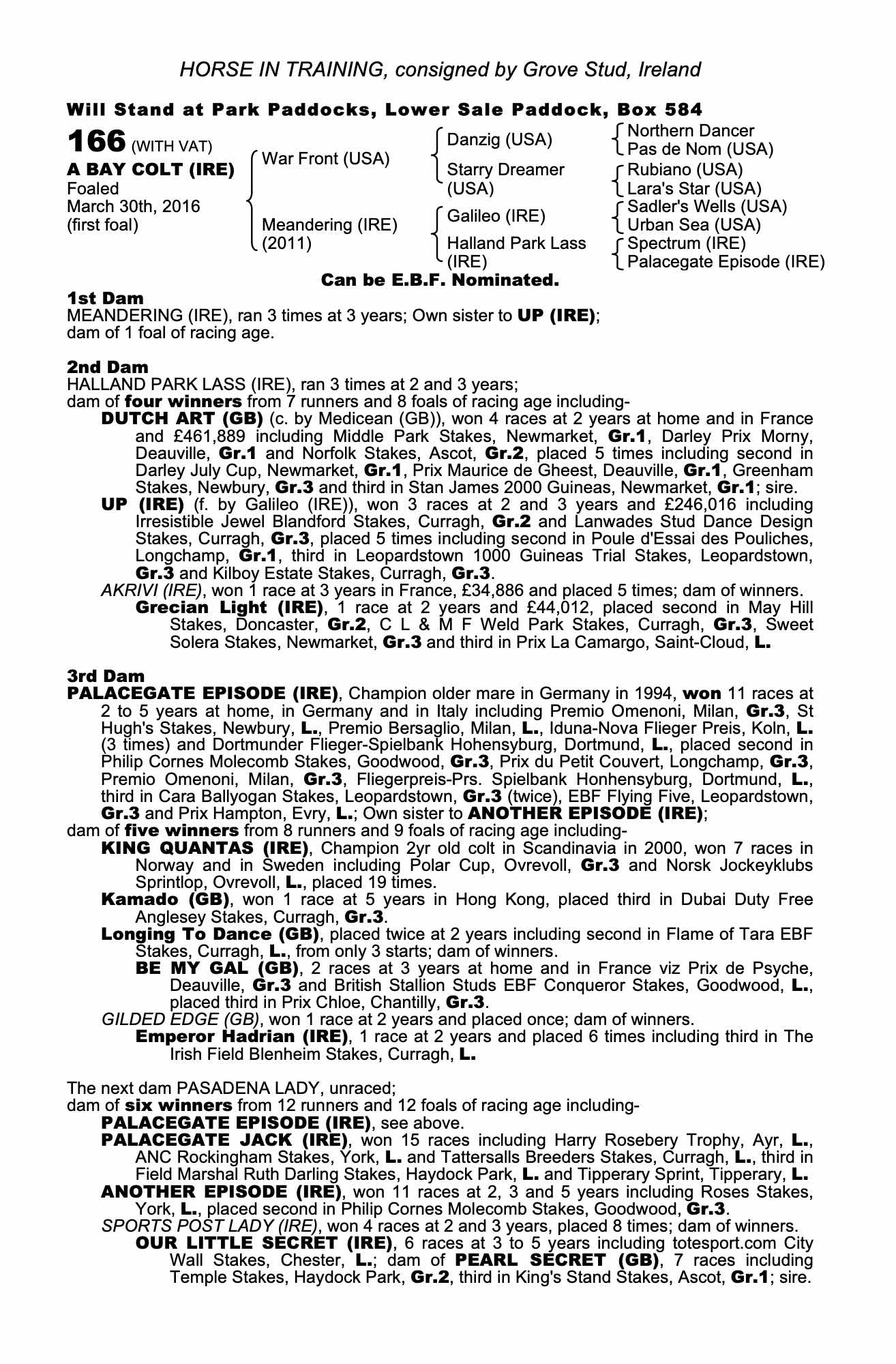 Consignor: Grove Stud, Ireland