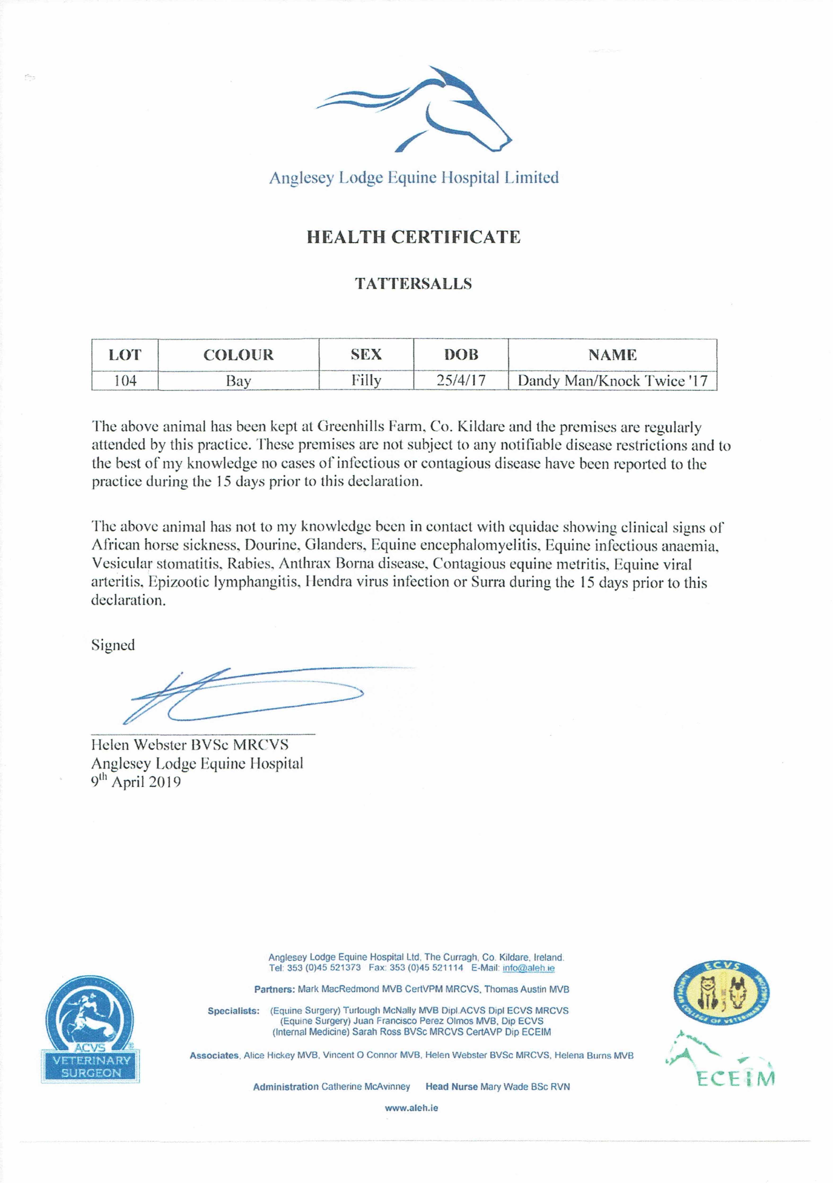 Consignor: Greenhills Farm, Ireland