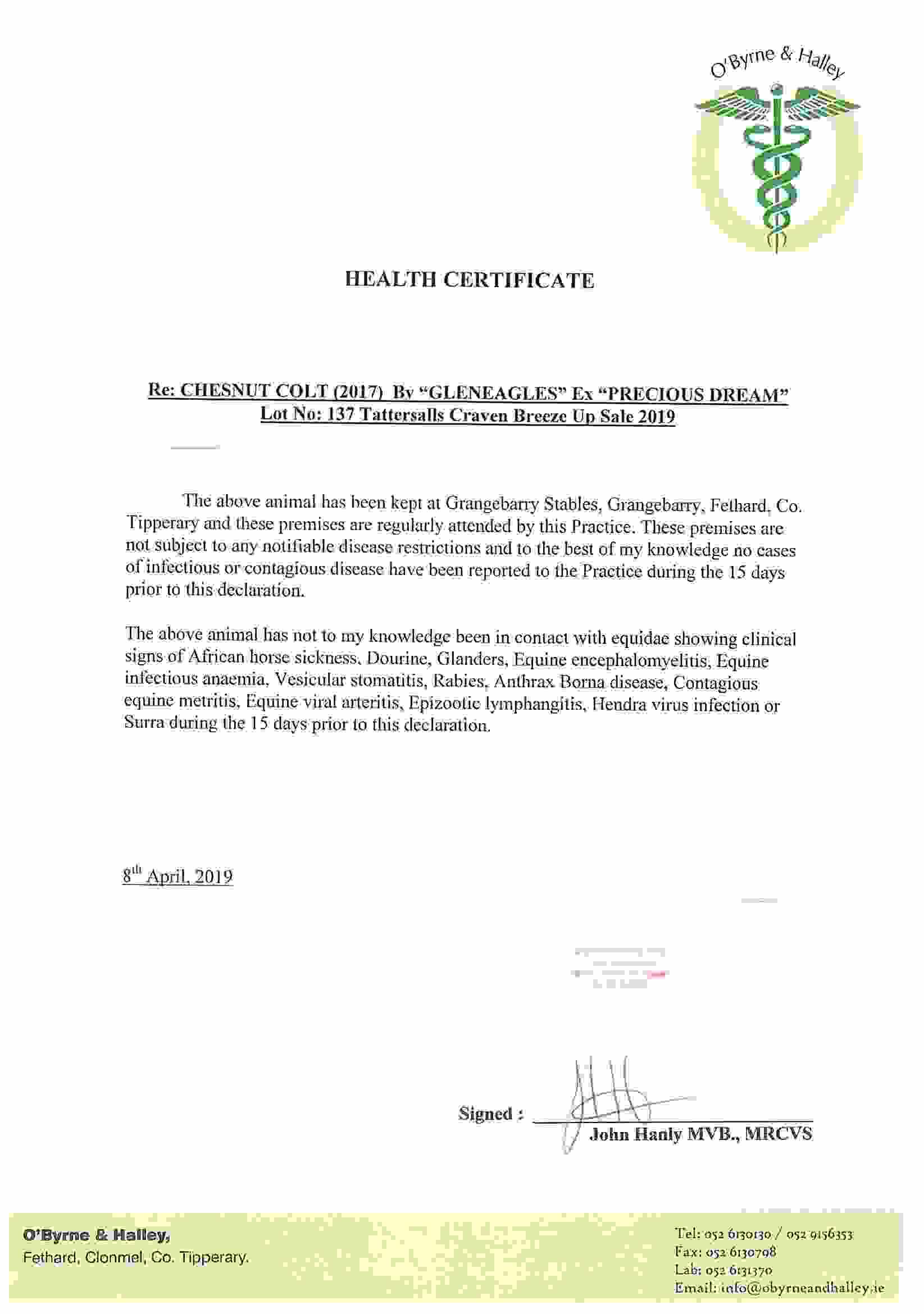July Sale 2018 lot 131 Emmie (IRE) (M. by High Chaparral (IRE)), Crimbourne Bloodstock Ltd.=>Ballyhane Stud 48,000 gns