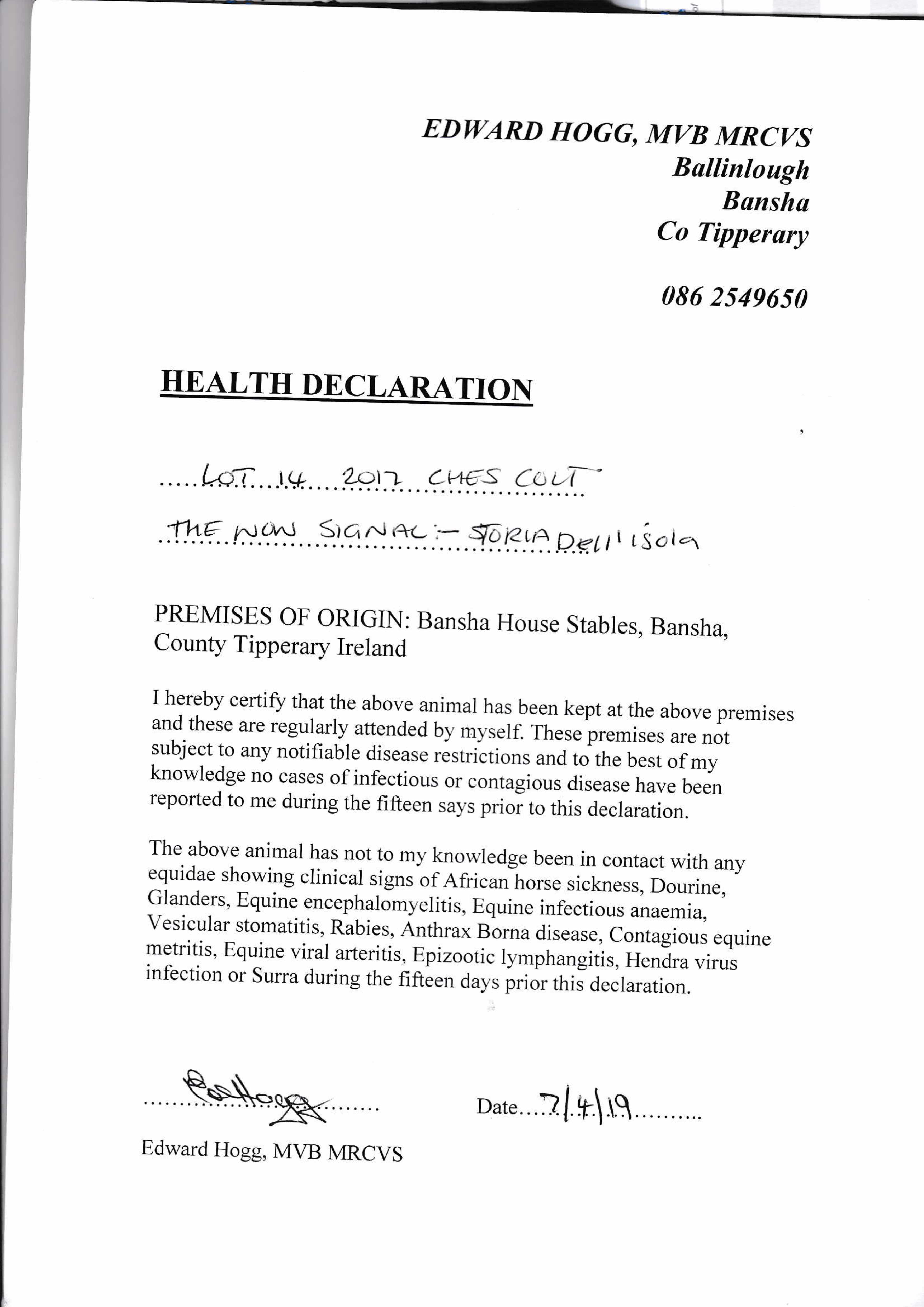 Health Certificate