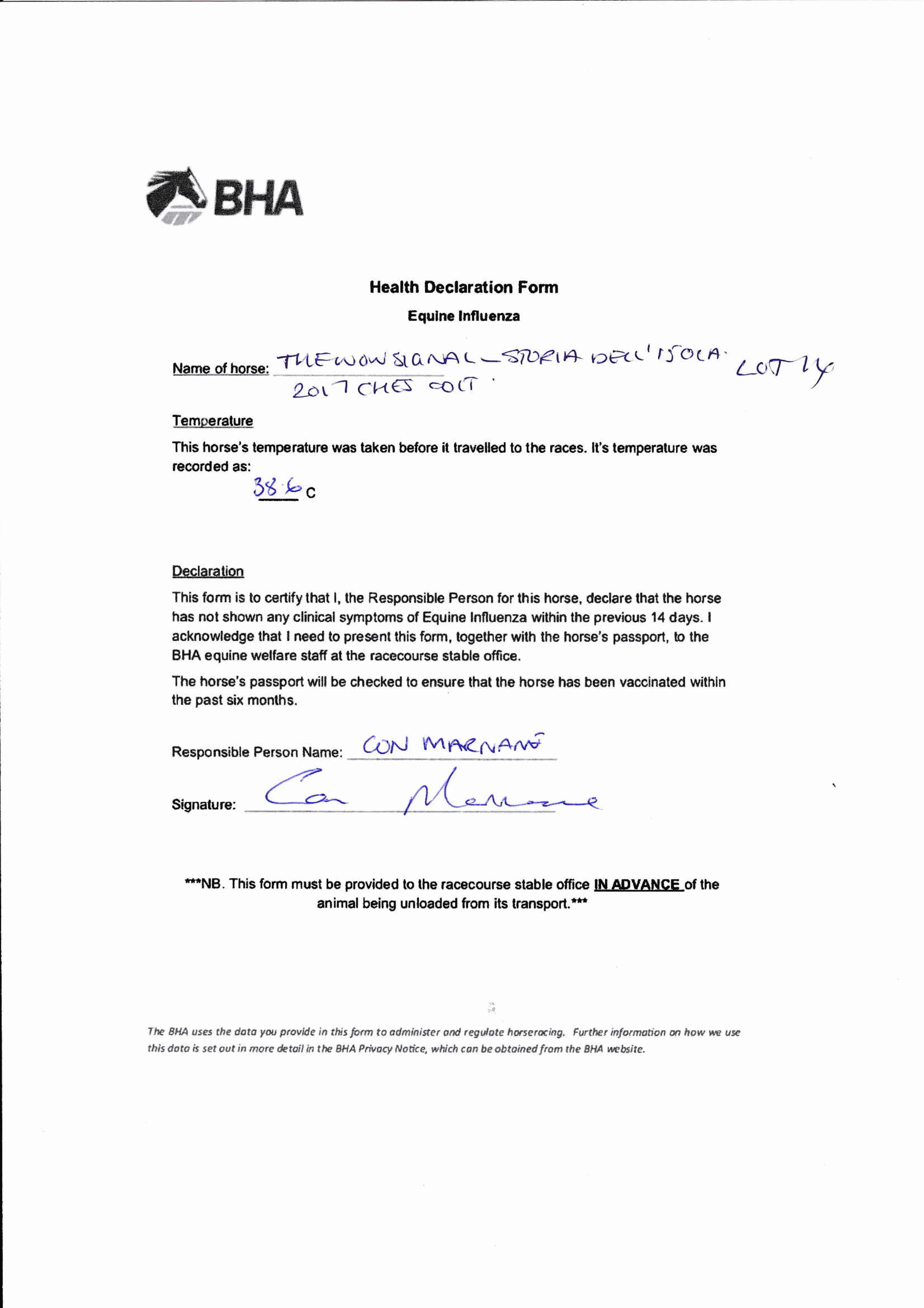 BHA Health Declaration
